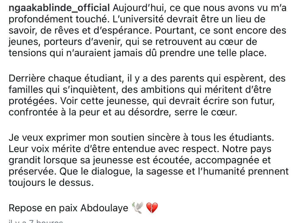 Profondément touché par les événements récents à l’université, Ngaaka Blindé rappelle que ce lieu doit rester un espace de savoir, d’espoir et d’avenir.