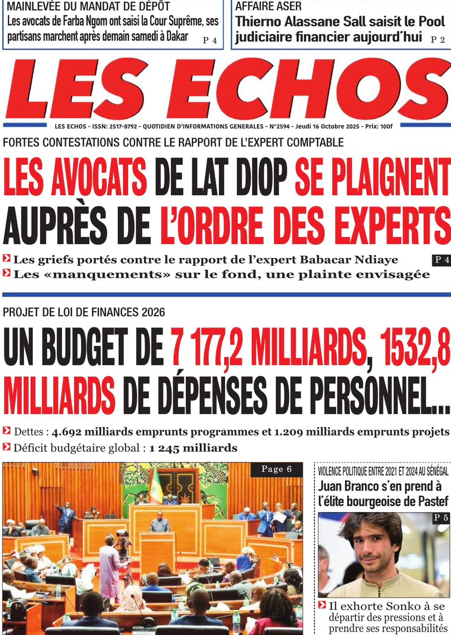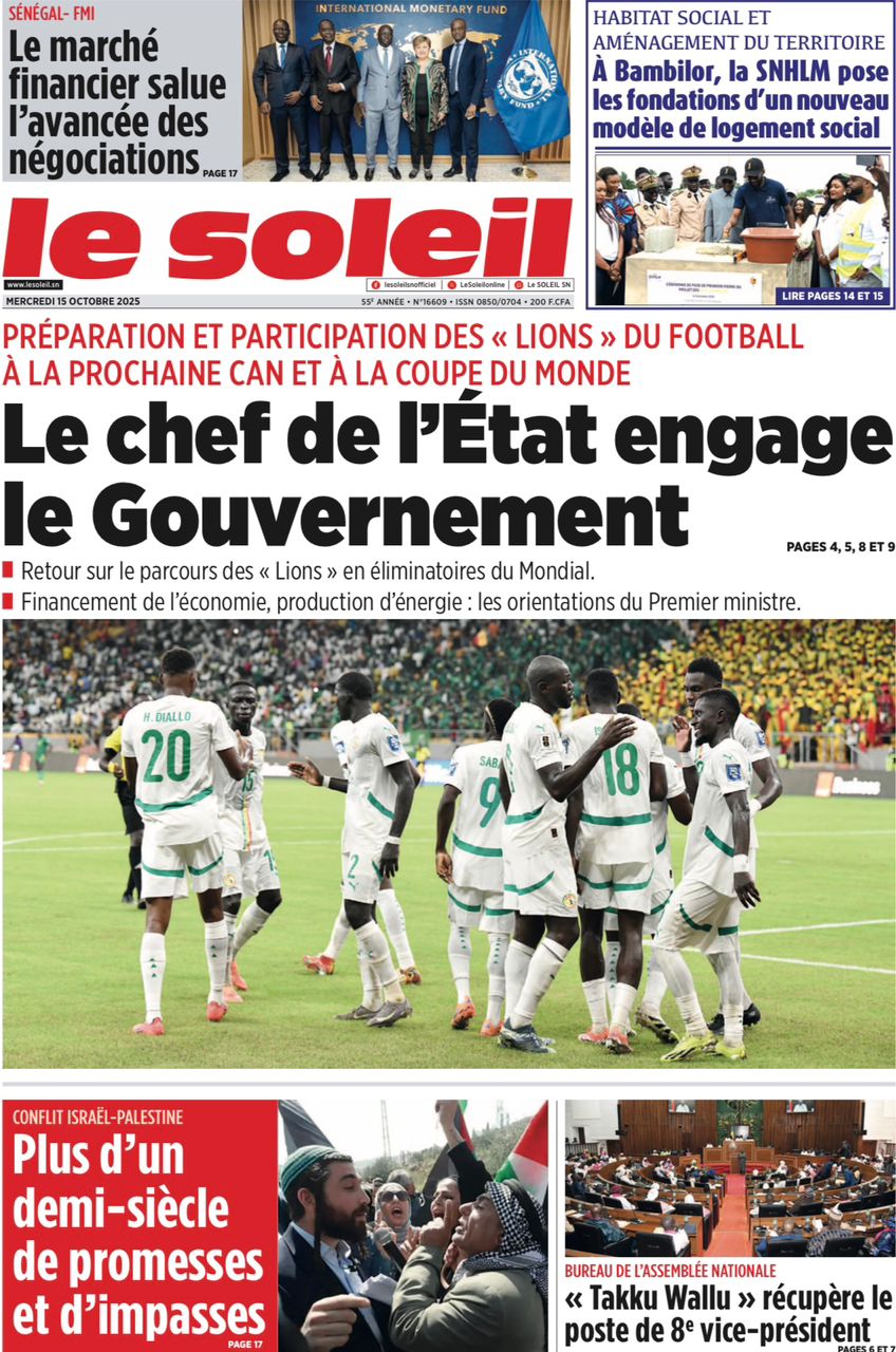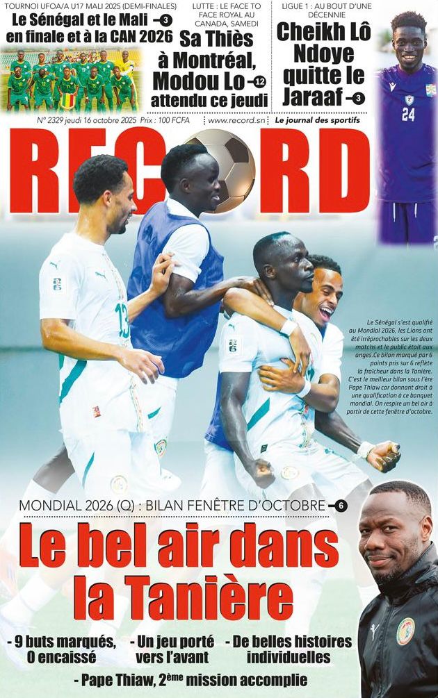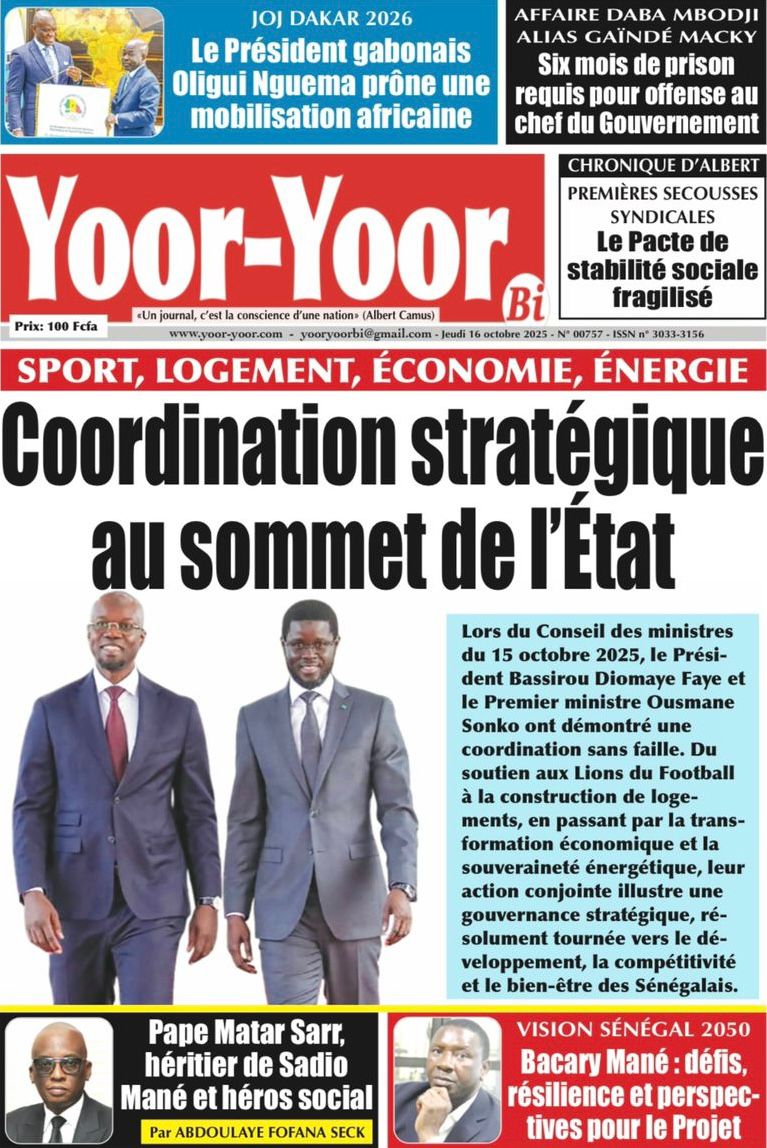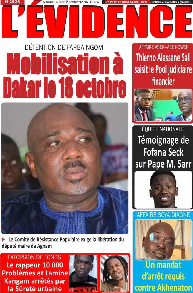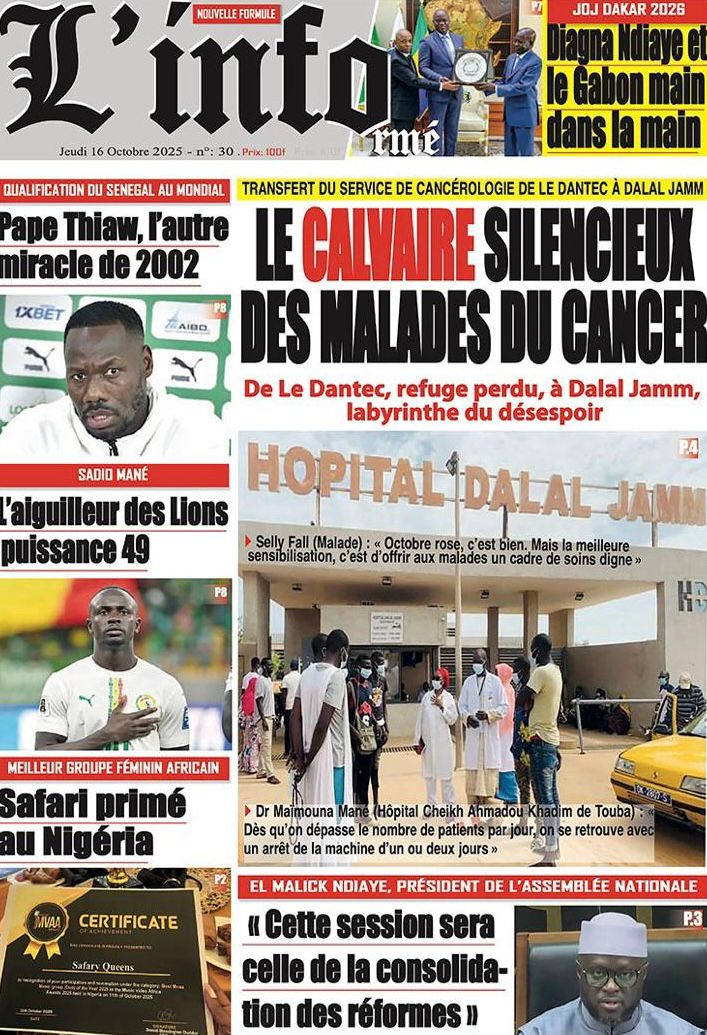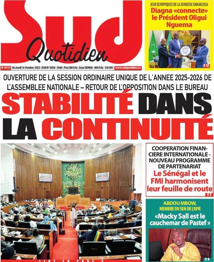 Découvrez les Unes des journaux sénégalais du jeudi 16 octobre 2025