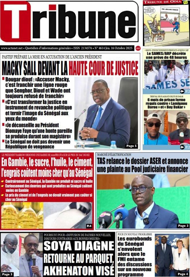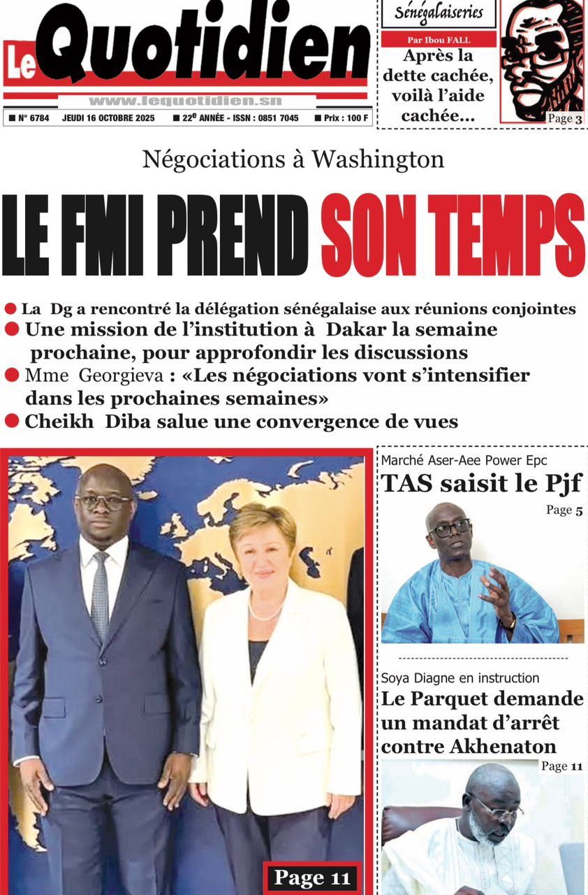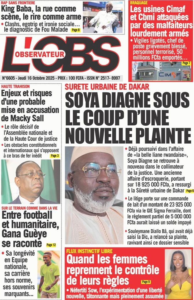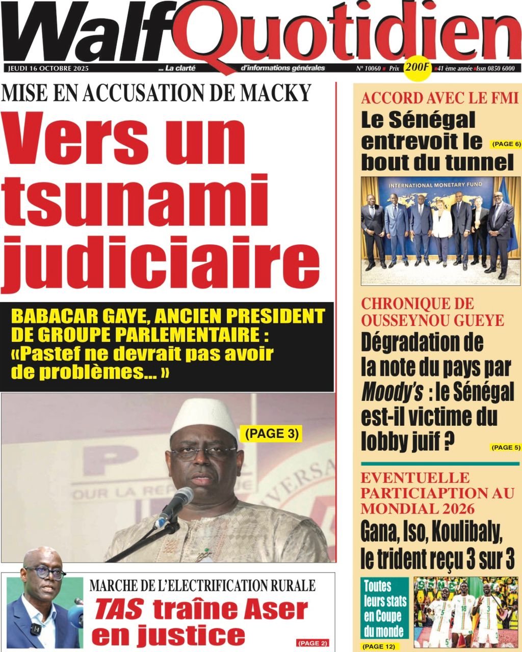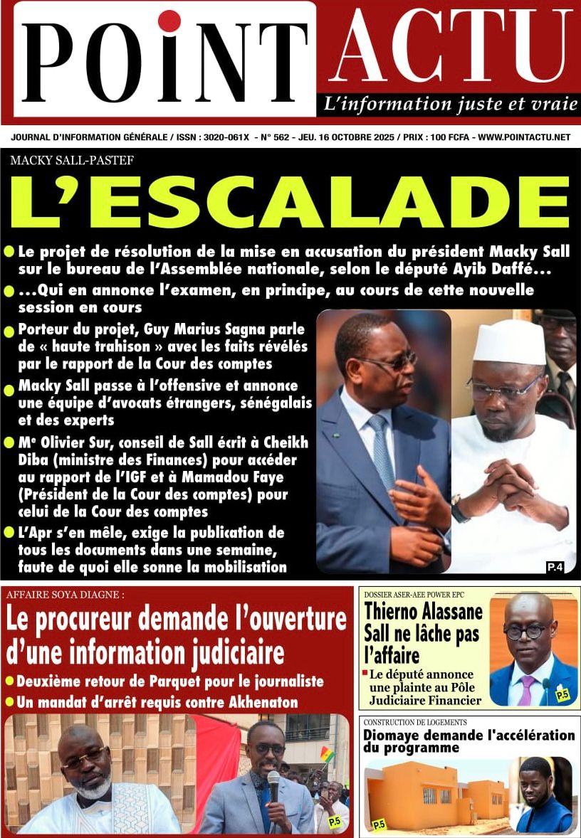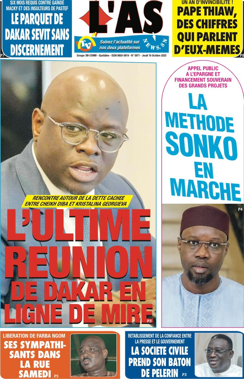 Découvrez les Unes des journaux sénégalais du jeudi 16 octobre 2025