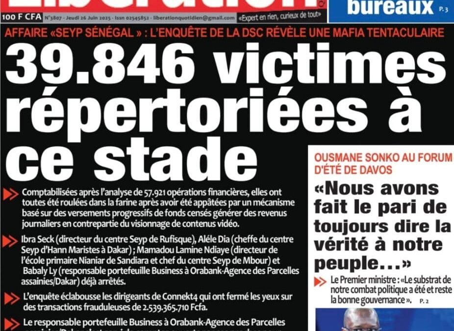 Accueil » Découvrez les Unes des journaux sénégalais du jeudi 26 juin 2025