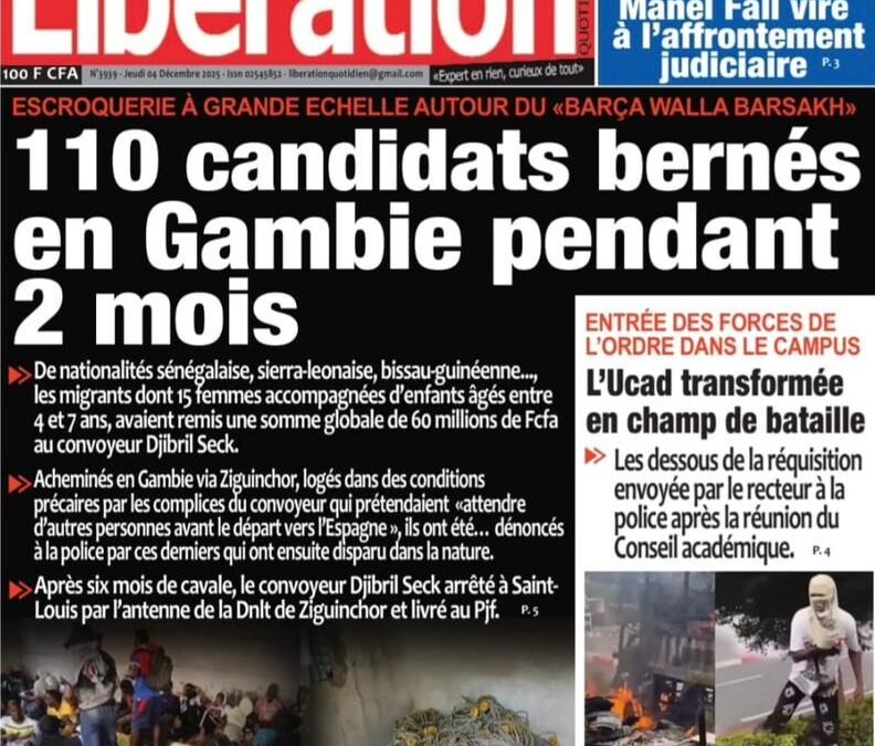 Accueil » Découvrez les Unes des journaux sénégalais du jeudi 4 décembre 2025