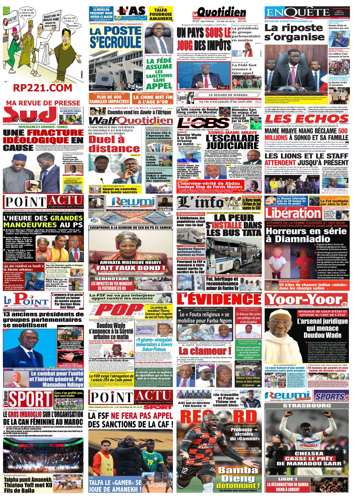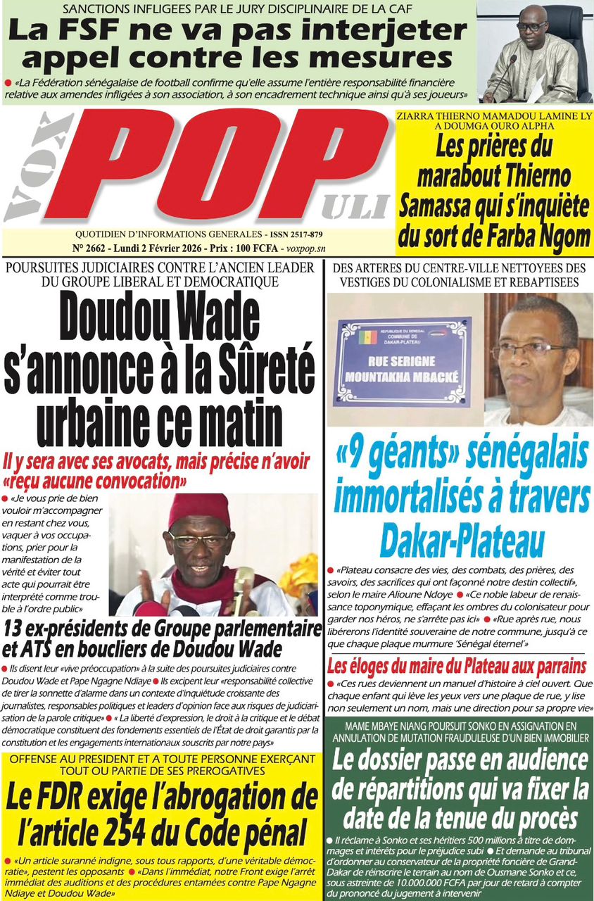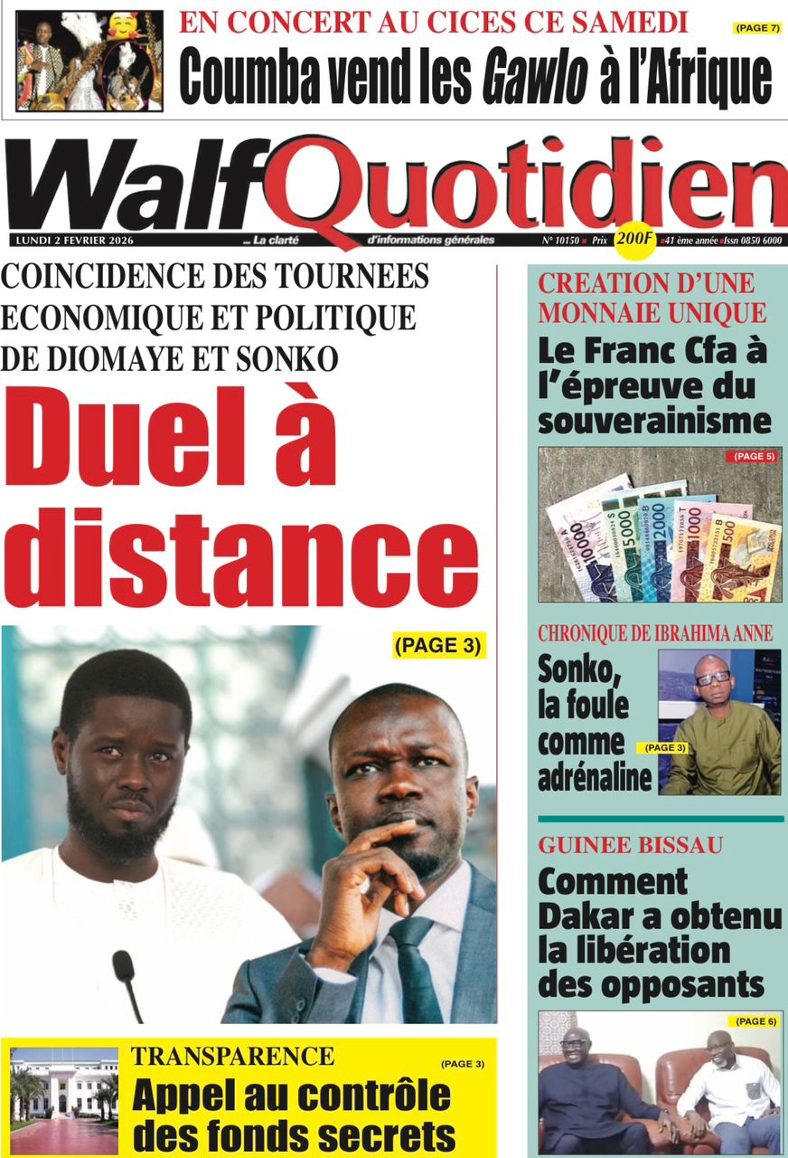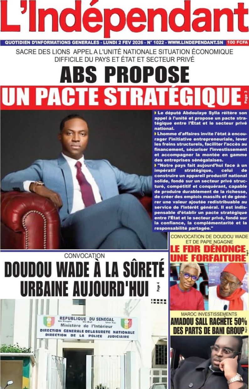 Accueil » Découvrez les Unes des journaux sénégalais du lundi 02 février 2026