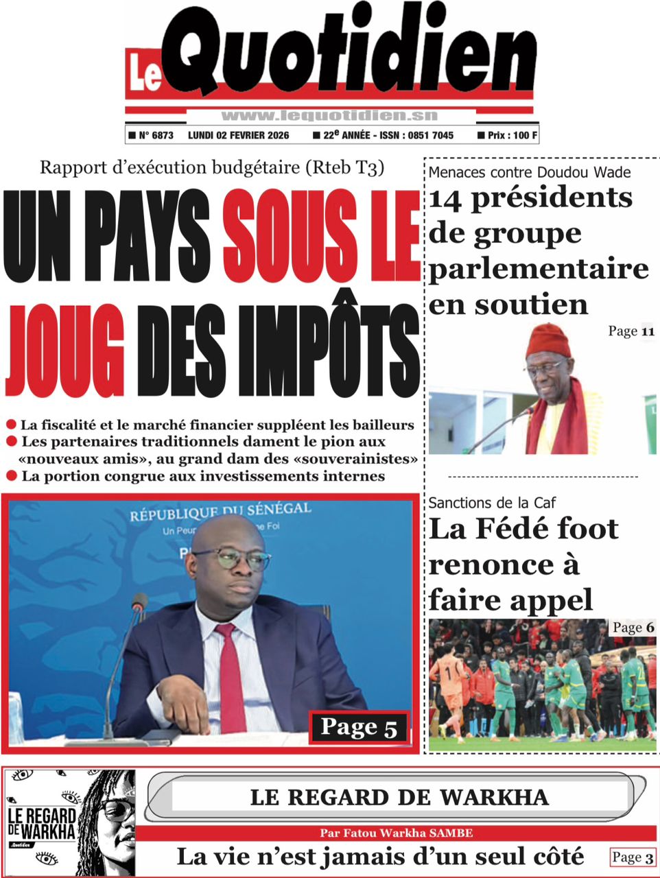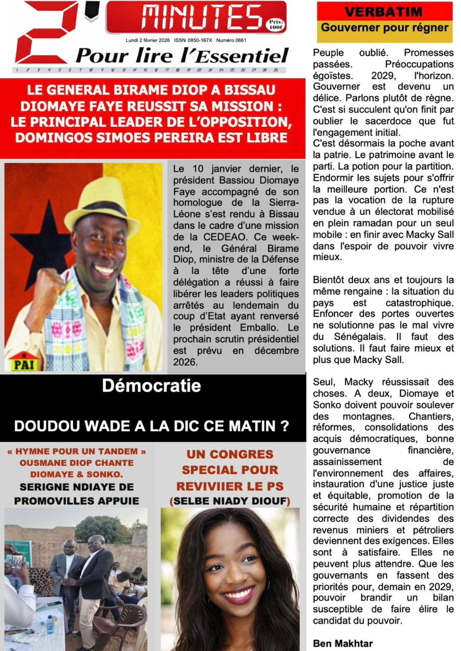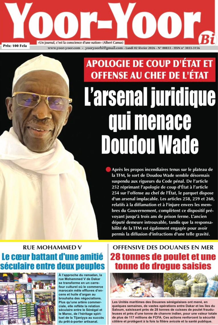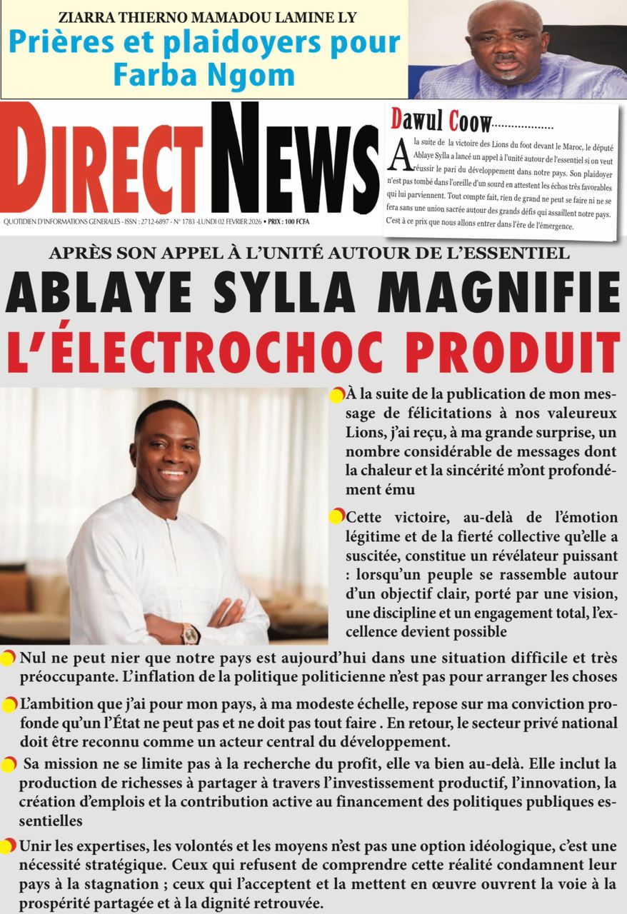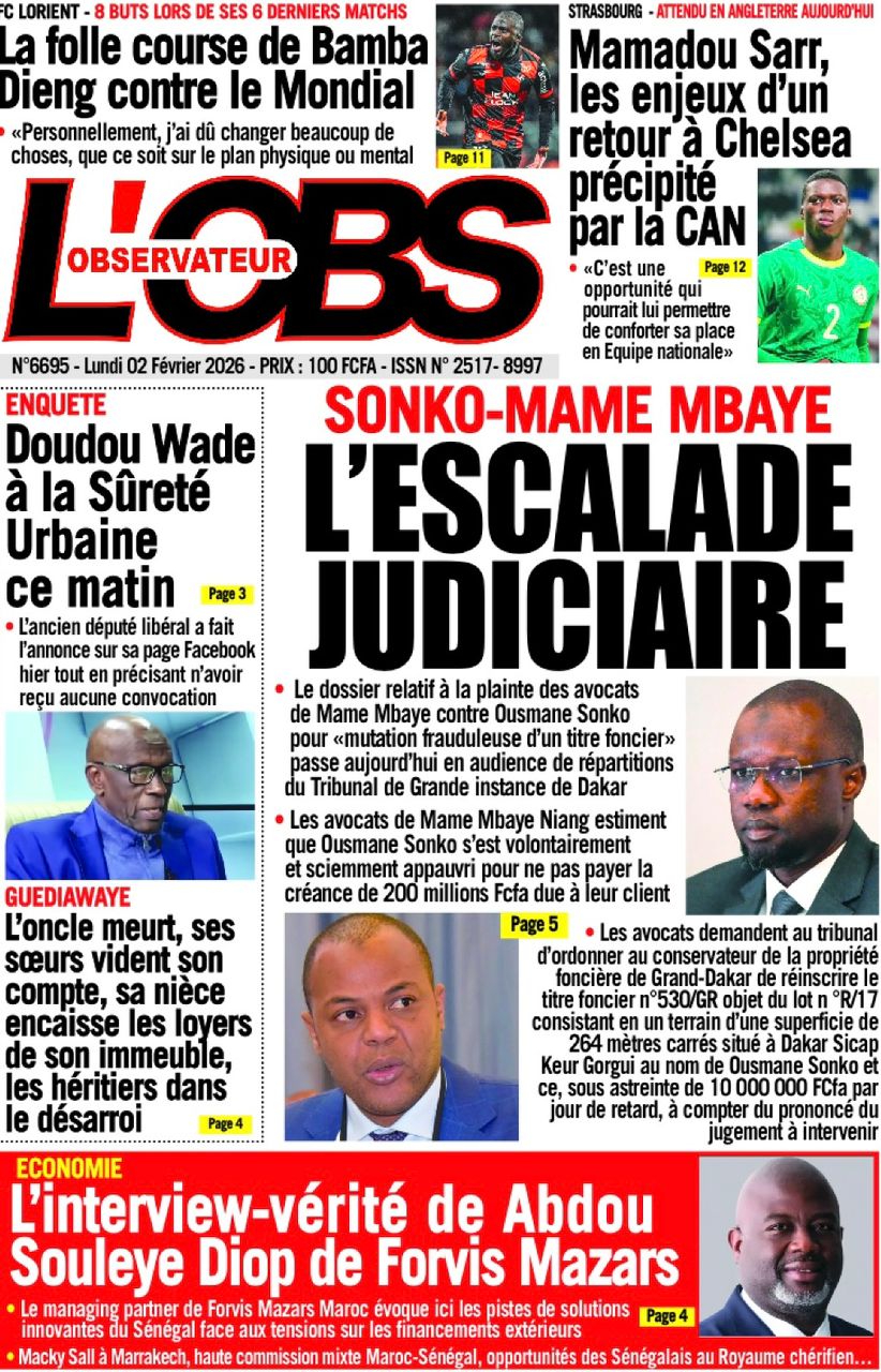 Découvrez les Unes des journaux sénégalais du lundi 02 février 2026