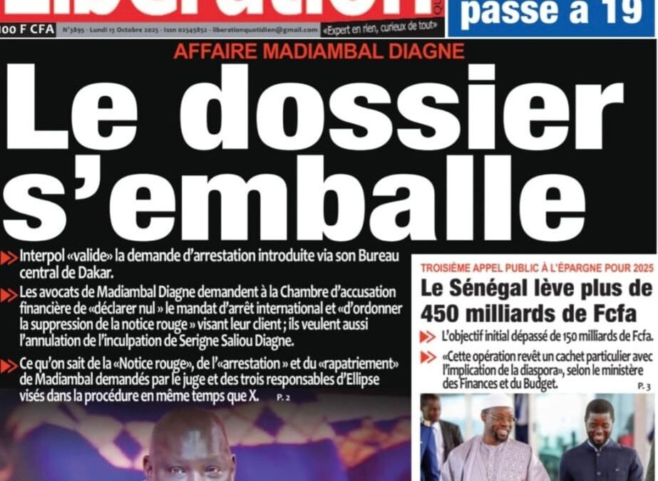 Découvrez les Unes des journaux sénégalais du lundi 13 octobre 2025