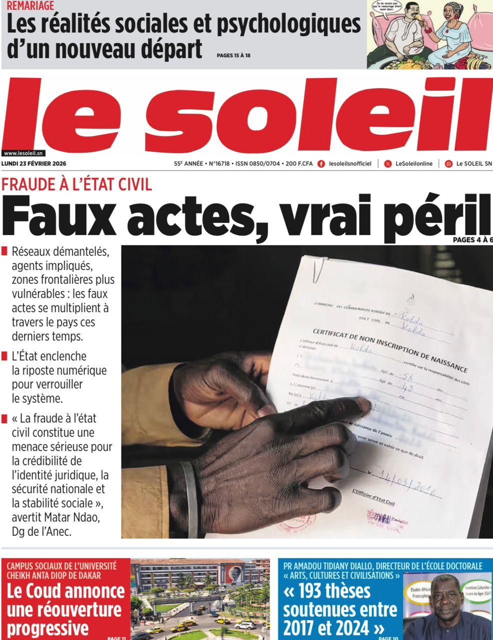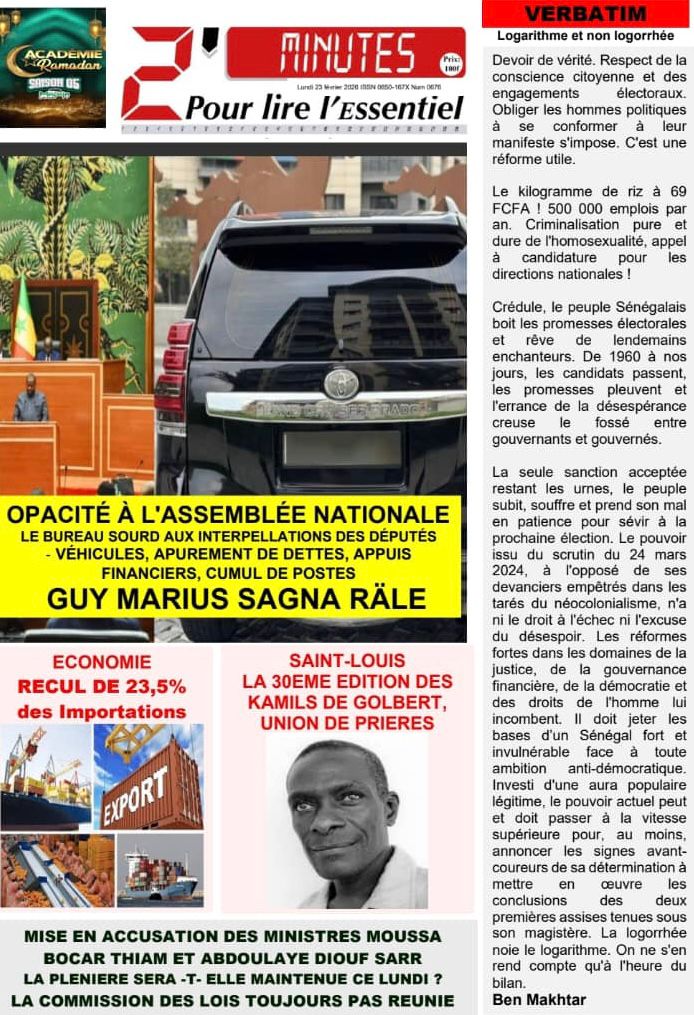 Revue de presse Revue de presse : La politique et d’autres sujets au menu des quotidiens23 février 2026