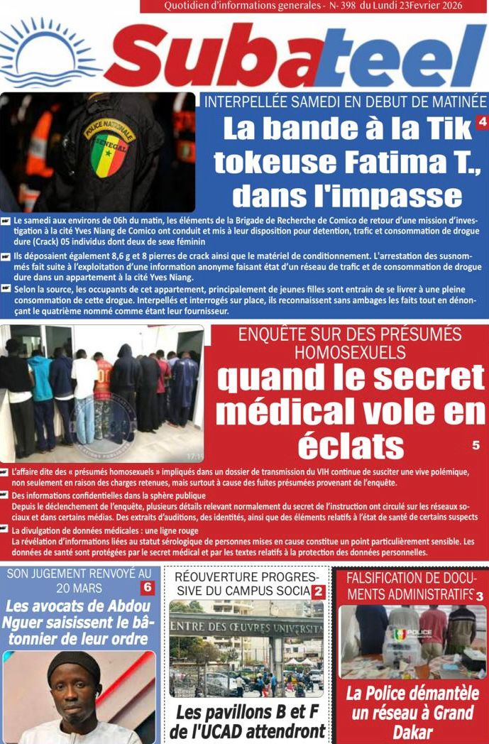 Audio Revue de Presse Wolof Zik FM : Lundi 23 Fevrier 2026 avec Mantoulaye Thioub Ndoye23 février 2026