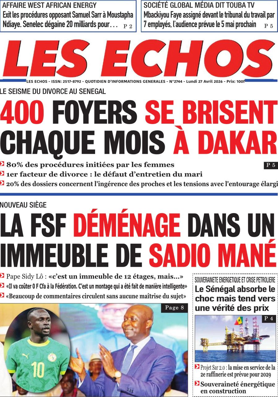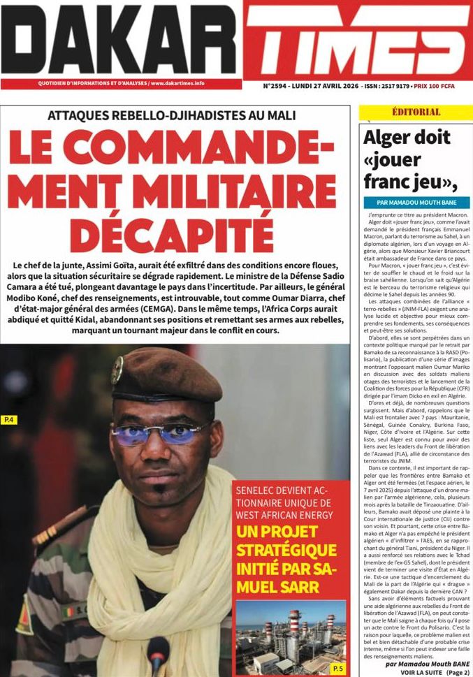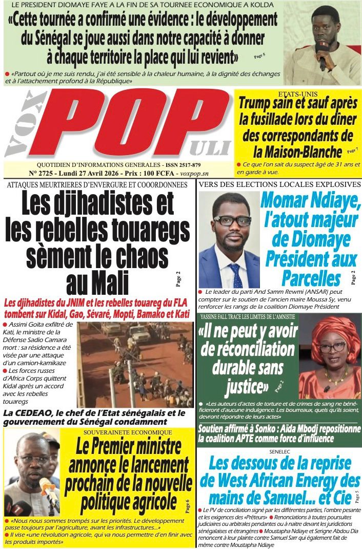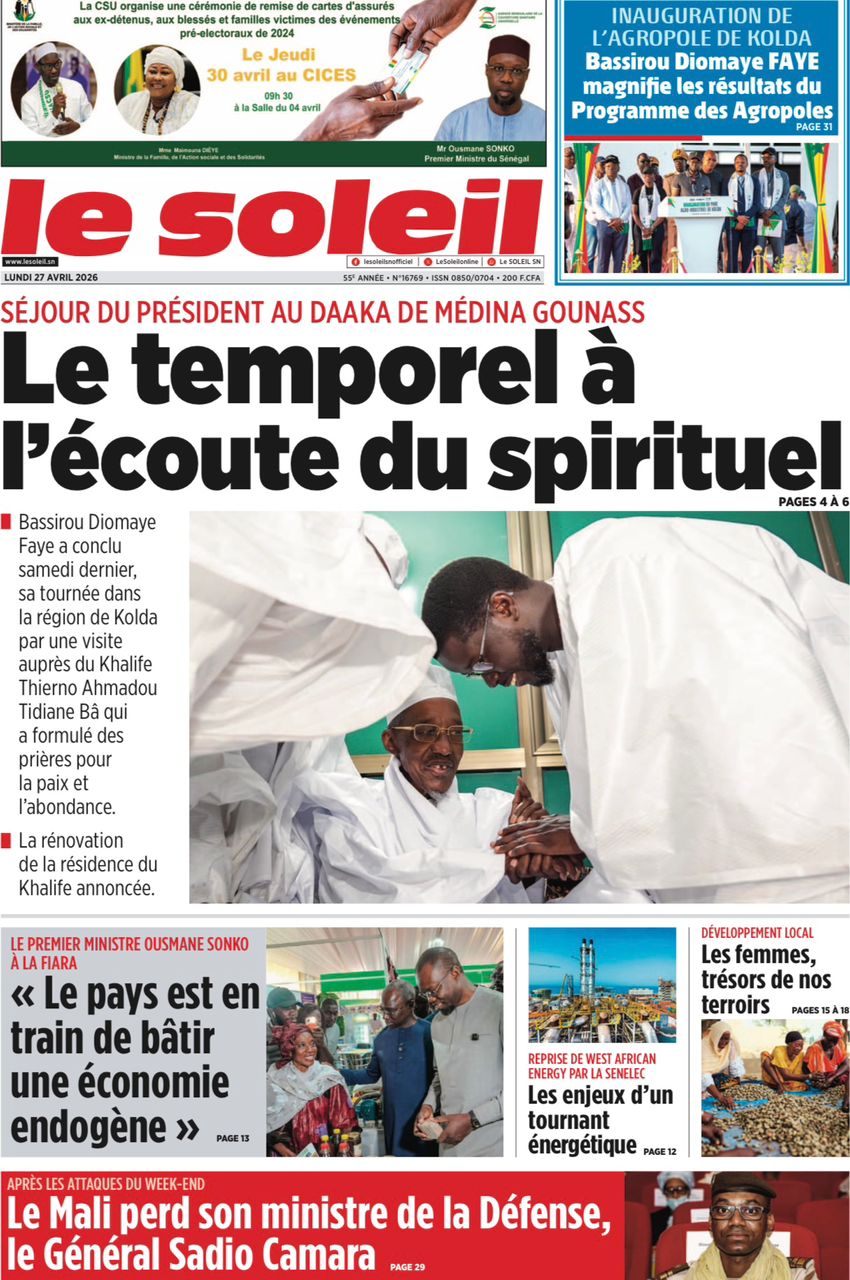 Découvrez les Unes des journaux sénégalais du lundi 27 avril 2026