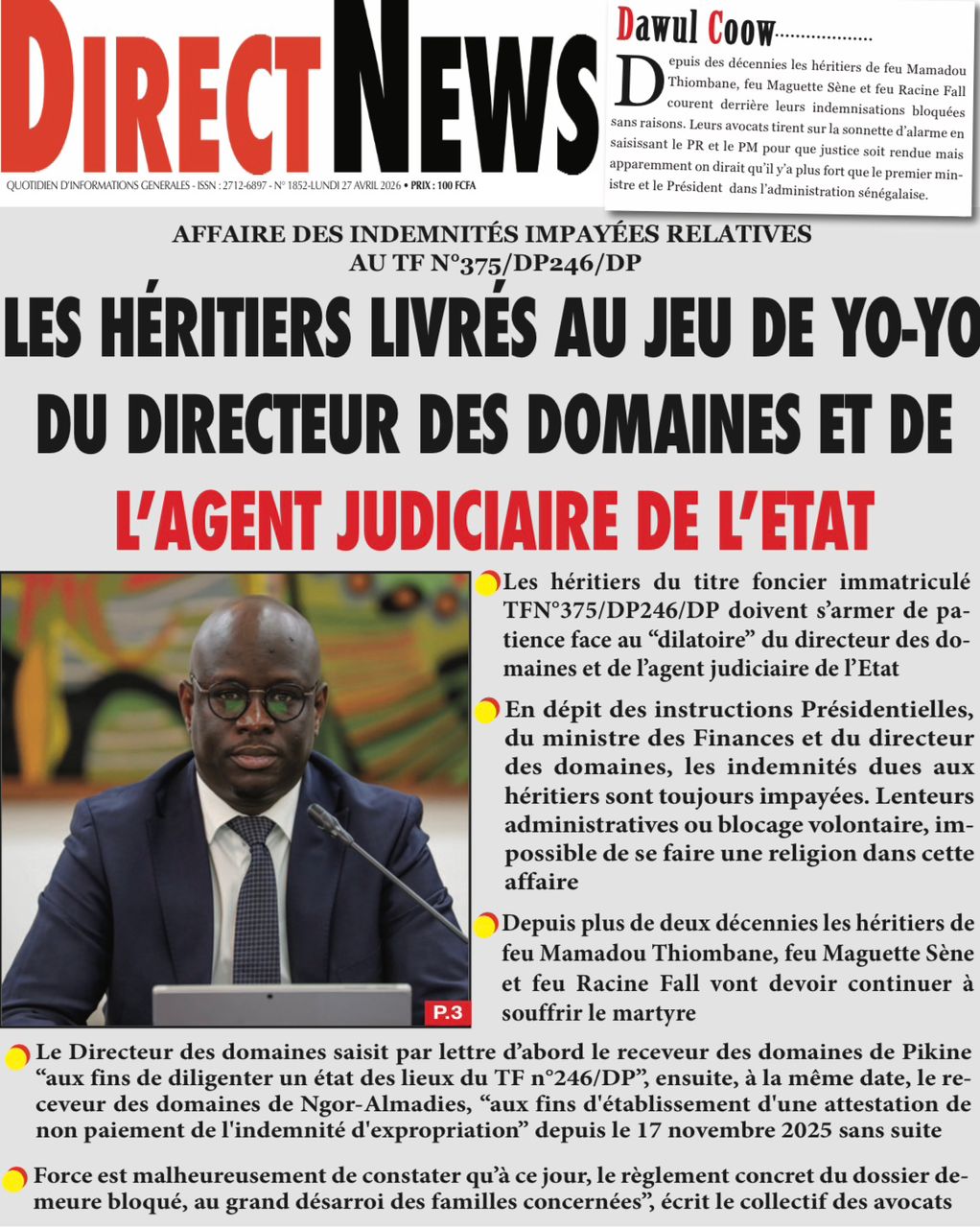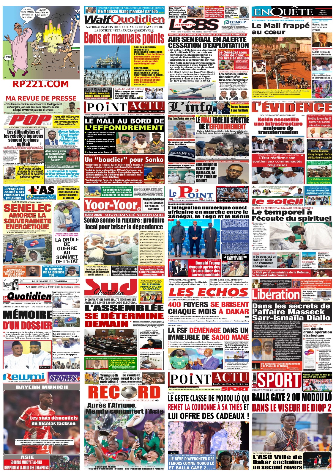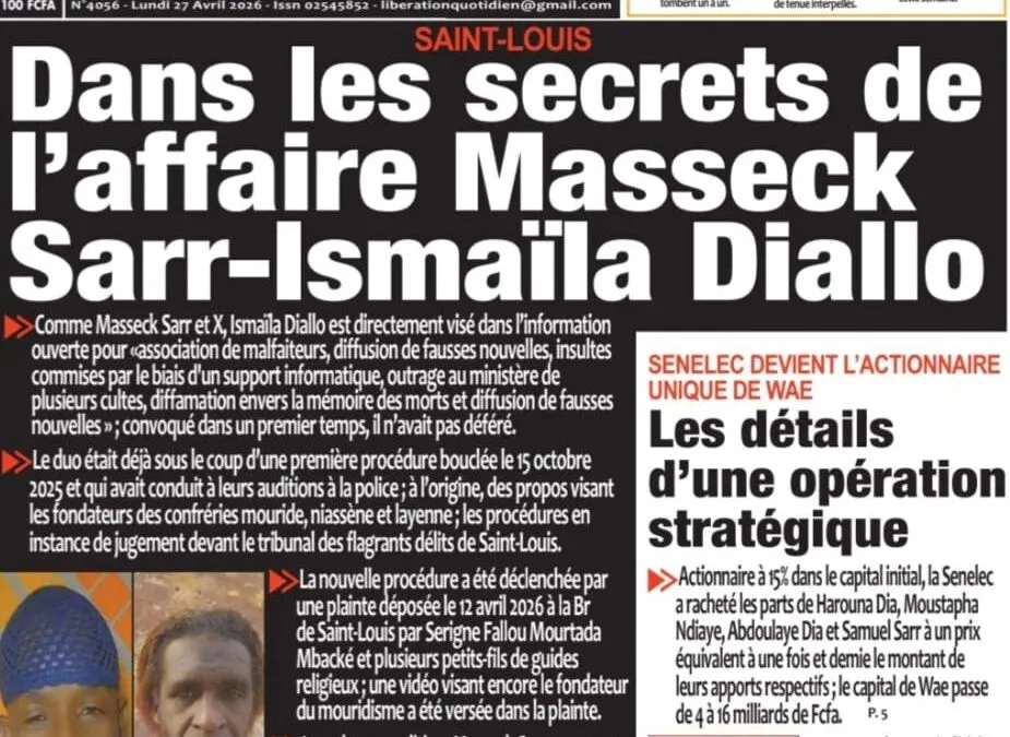 Découvrez les Unes des journaux sénégalais du lundi 27 avril 2026