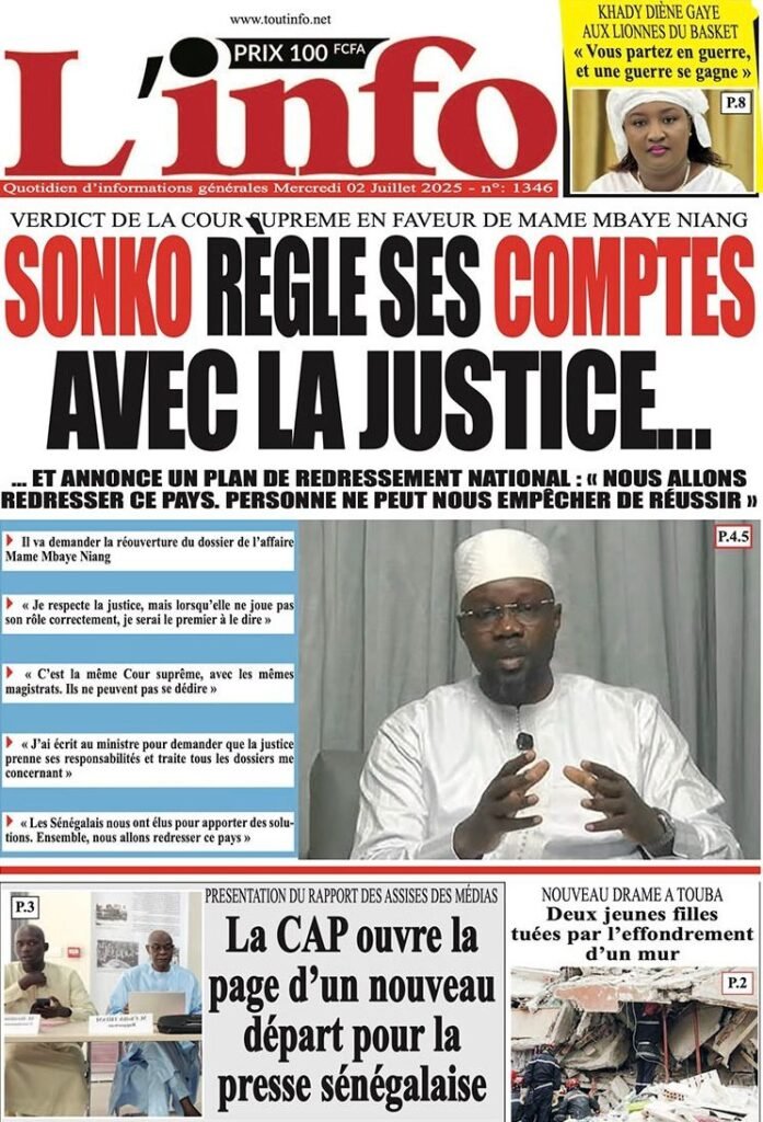 Accueil » Découvrez les Unes des journaux sénégalais du mercredi 02 juillet 2025