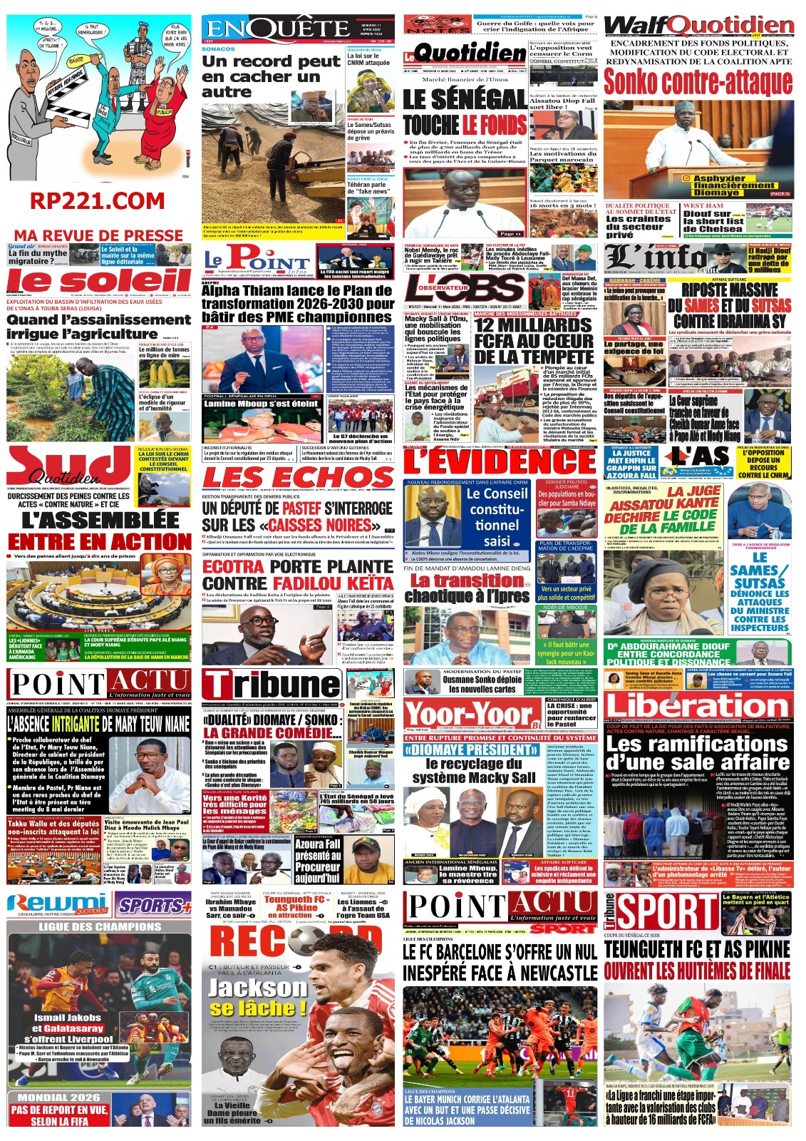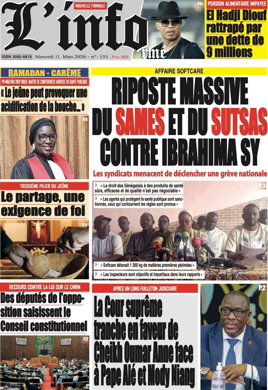 Découvrez les Unes des journaux sénégalais du mercredi 11 mars 2026