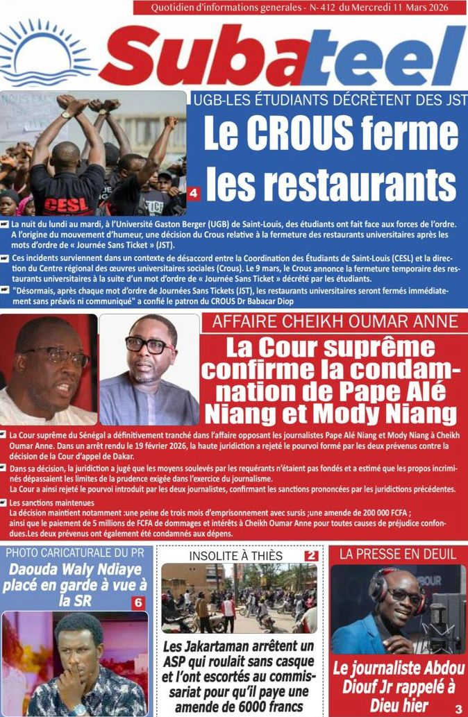 Accueil » Découvrez les Unes des journaux sénégalais du mercredi 11 mars 2026