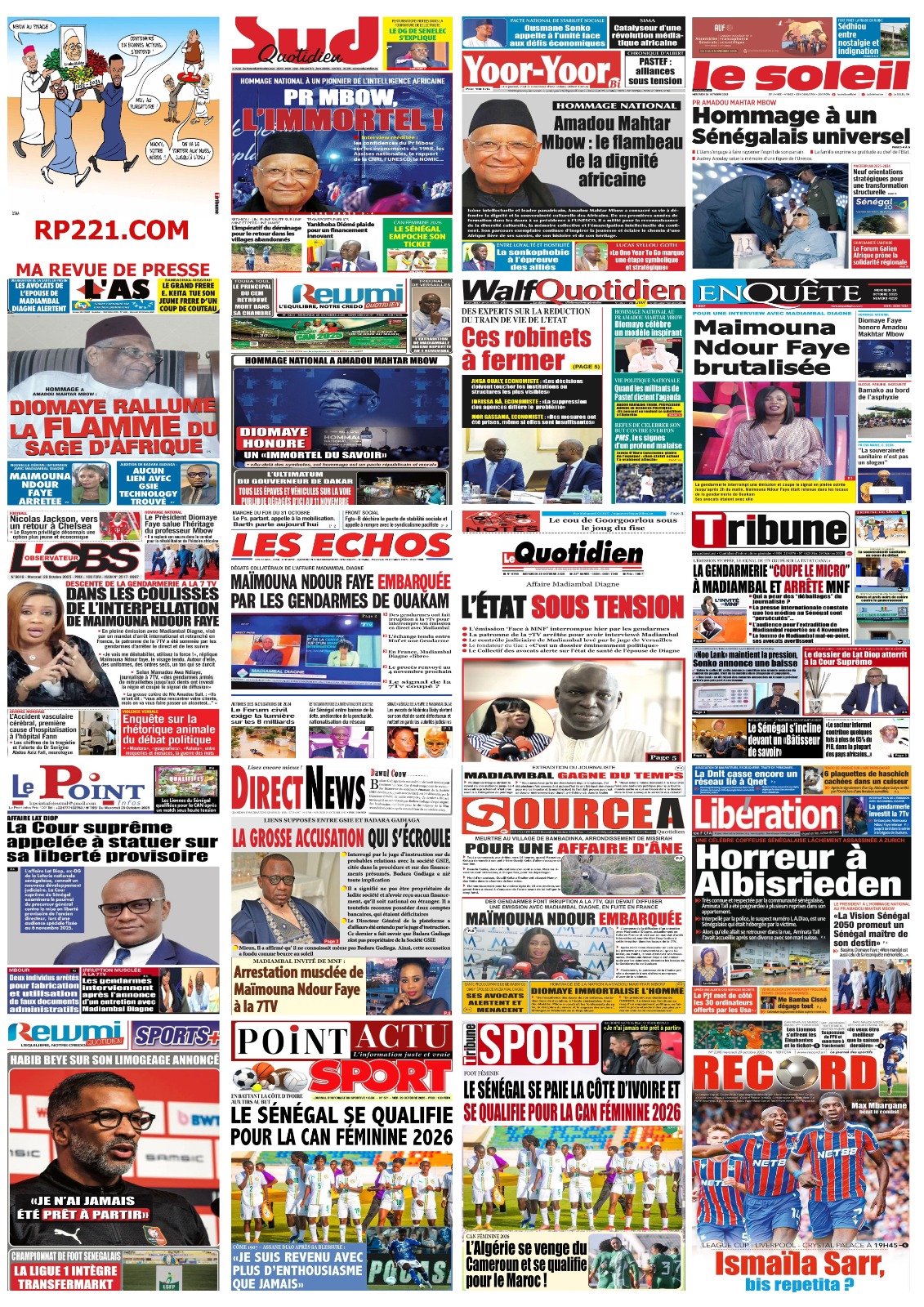 Revue de presse Ahmed Aidara du Mercredi 29 Octobre 2029