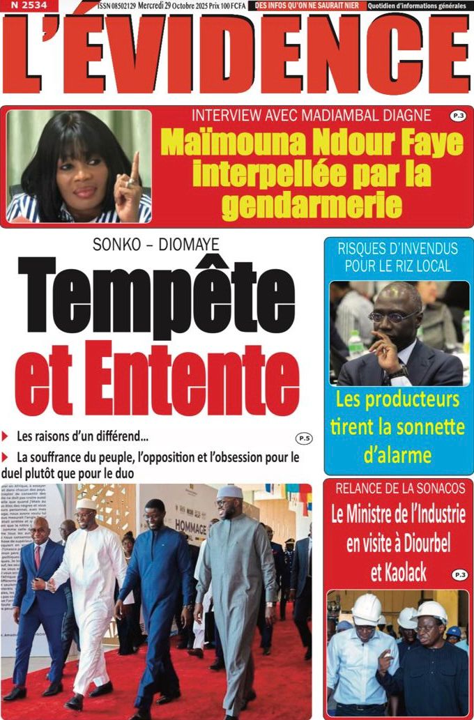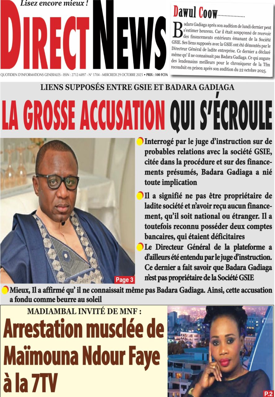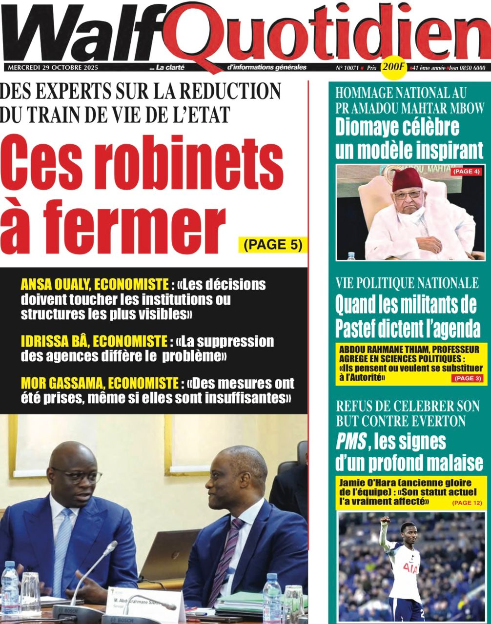 Accueil » Découvrez les Unes des journaux sénégalais du mercredi 29 octobre 2025