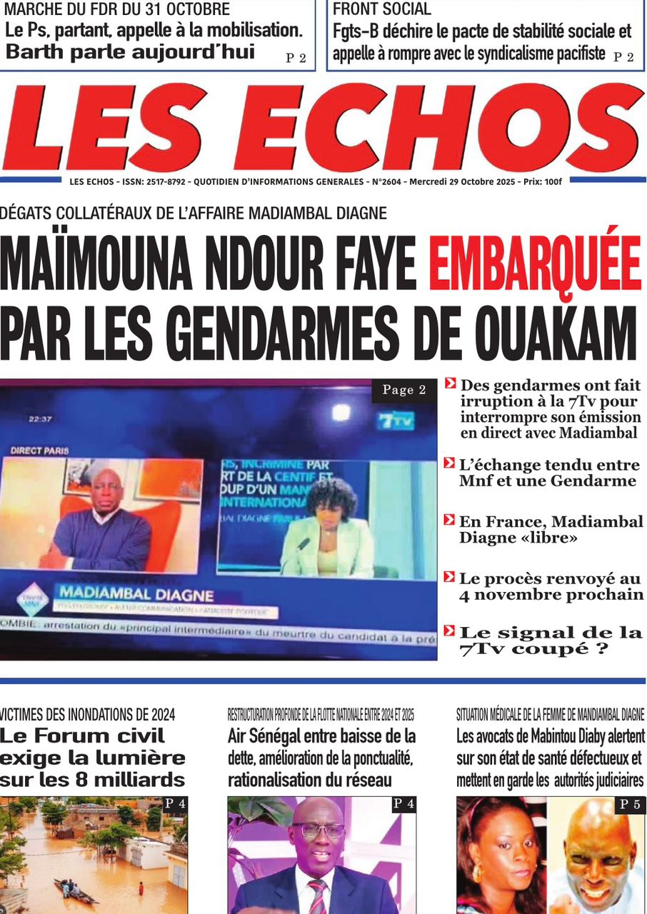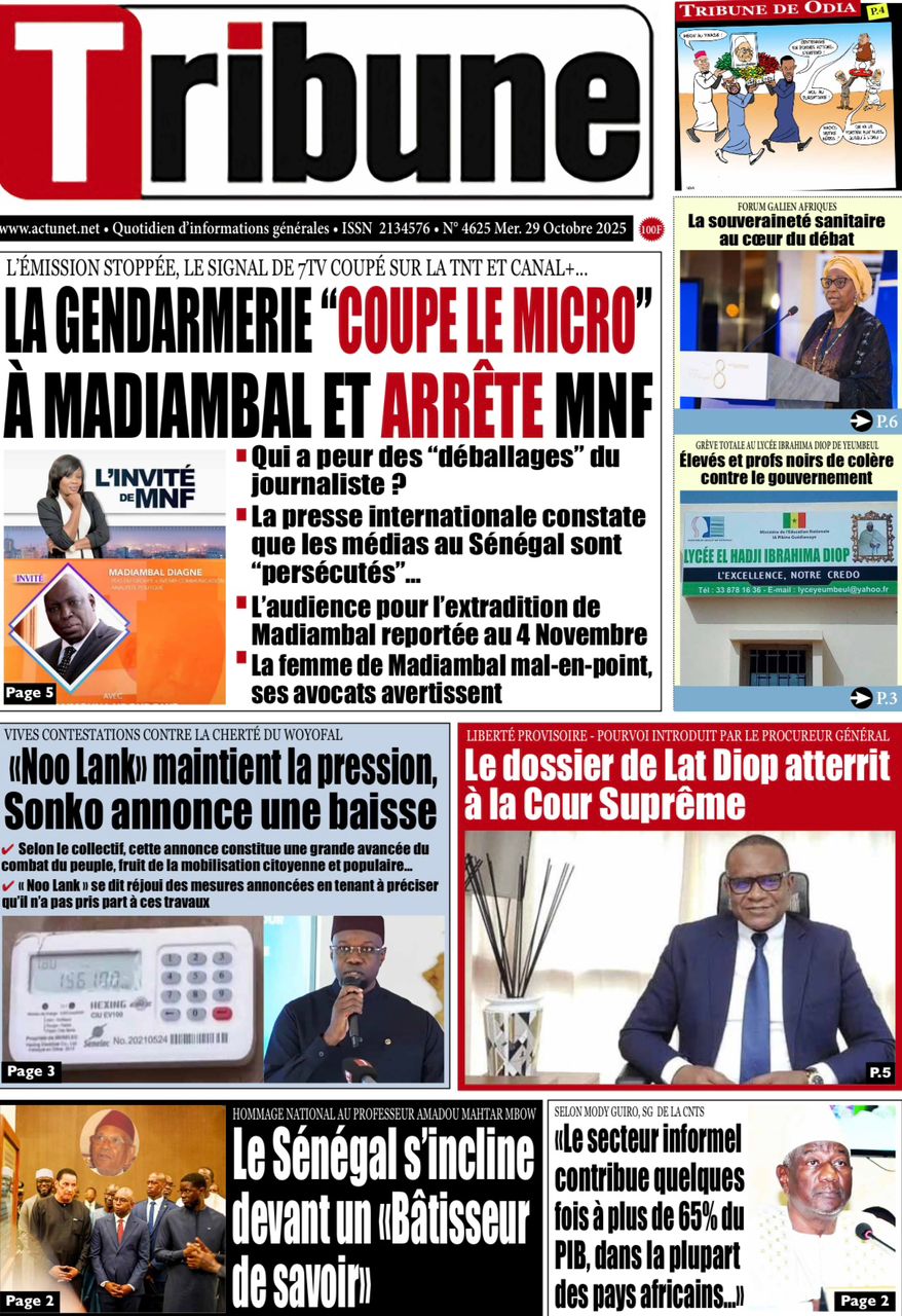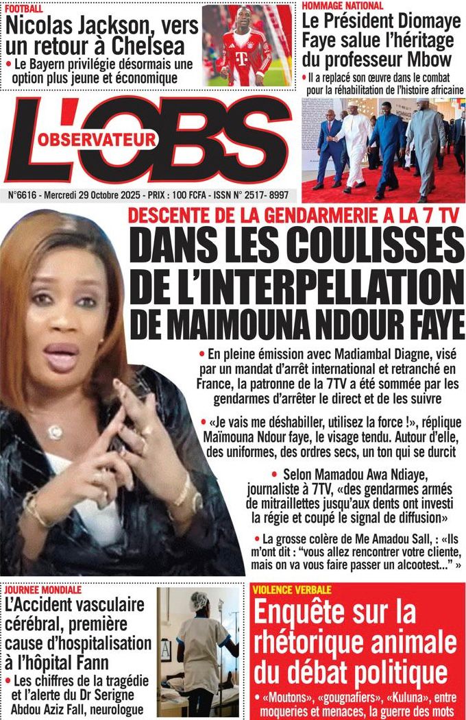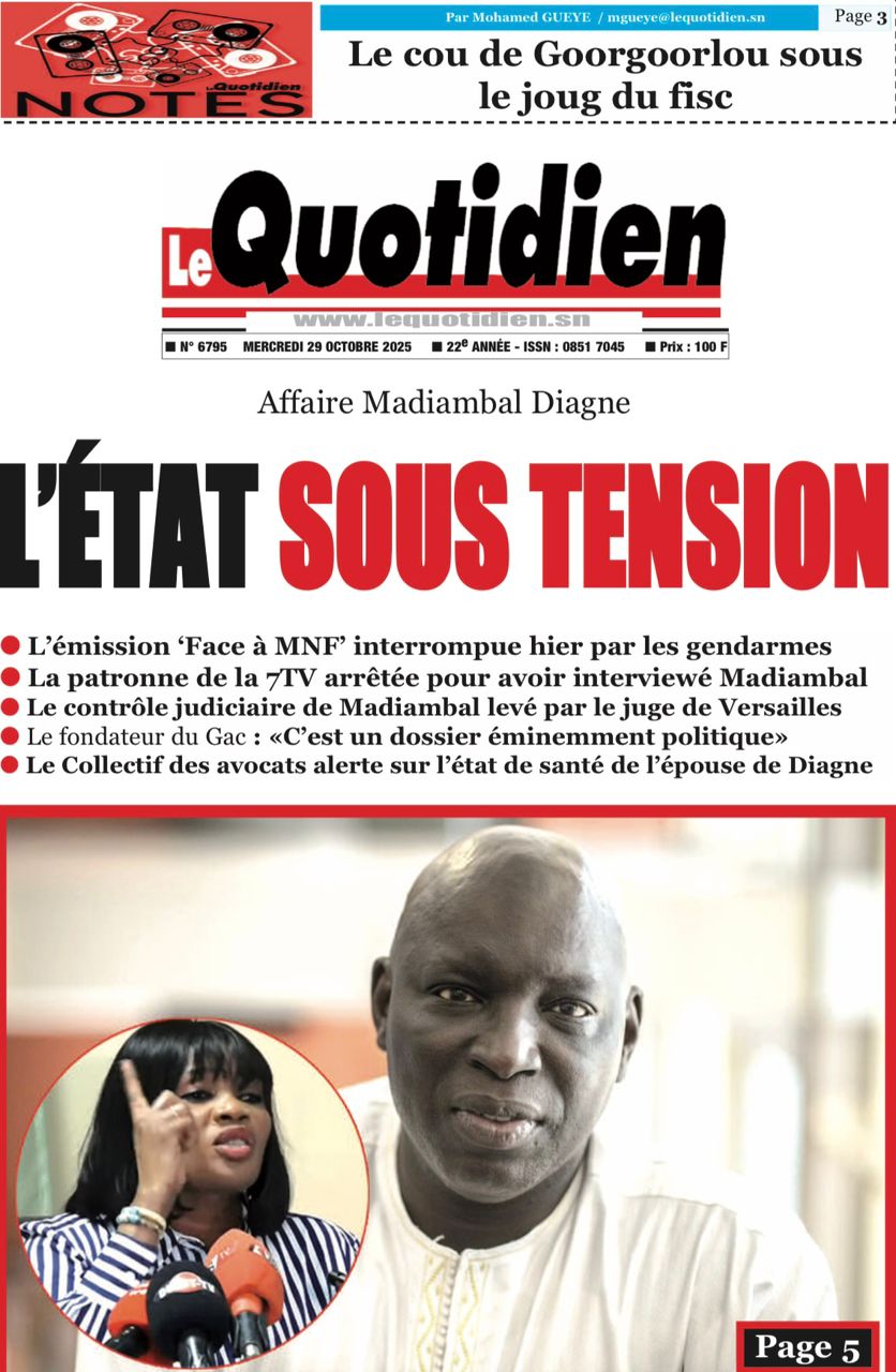 Accueil » Découvrez les Unes des journaux sénégalais du mercredi 29 octobre 2025