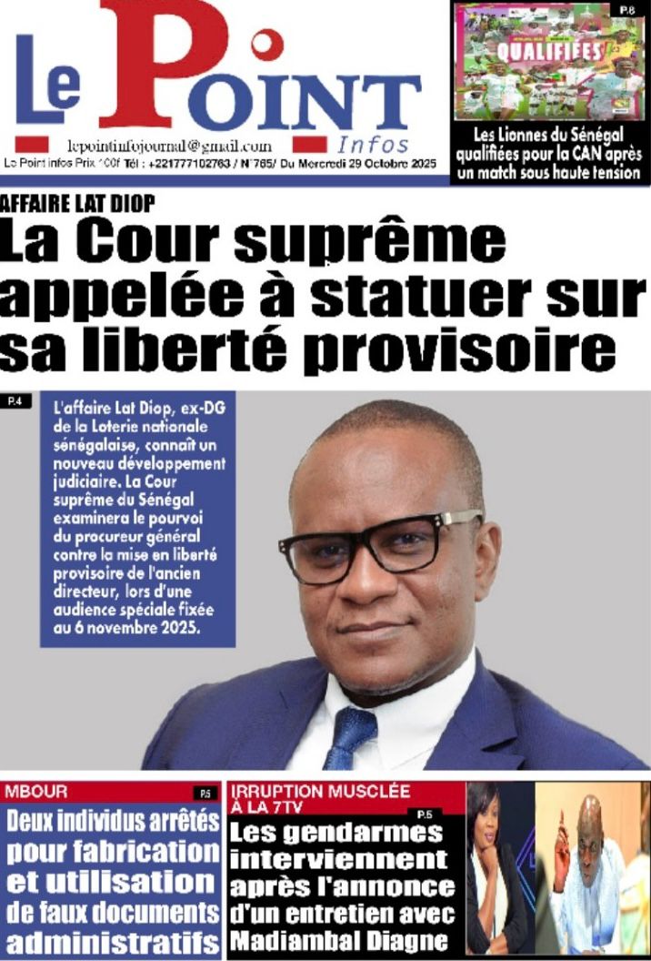 Découvrez les Unes des journaux sénégalais du mercredi 29 octobre 2025