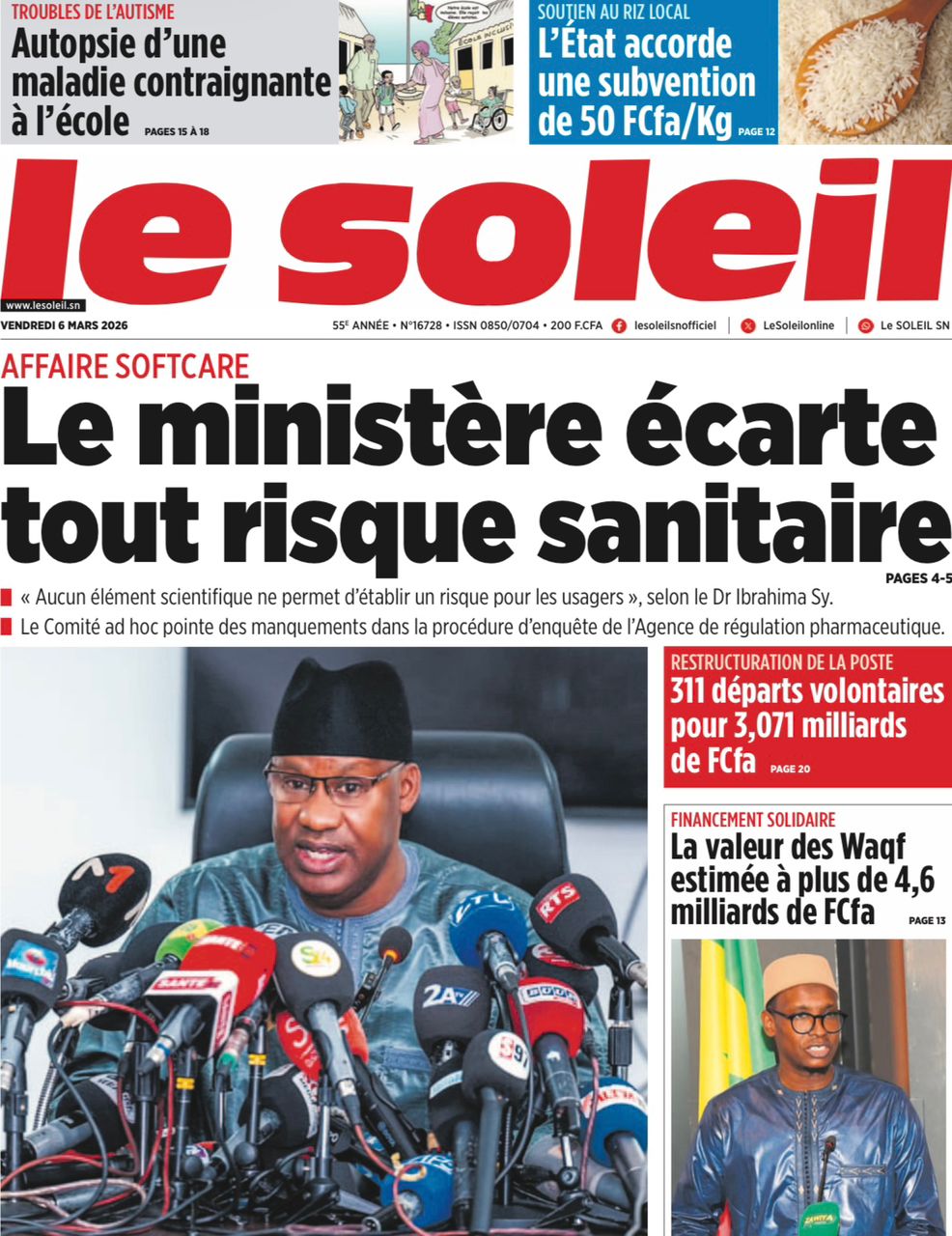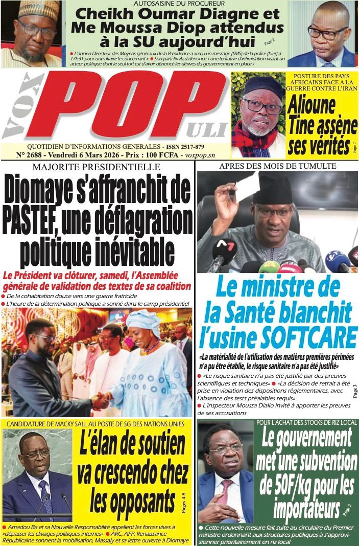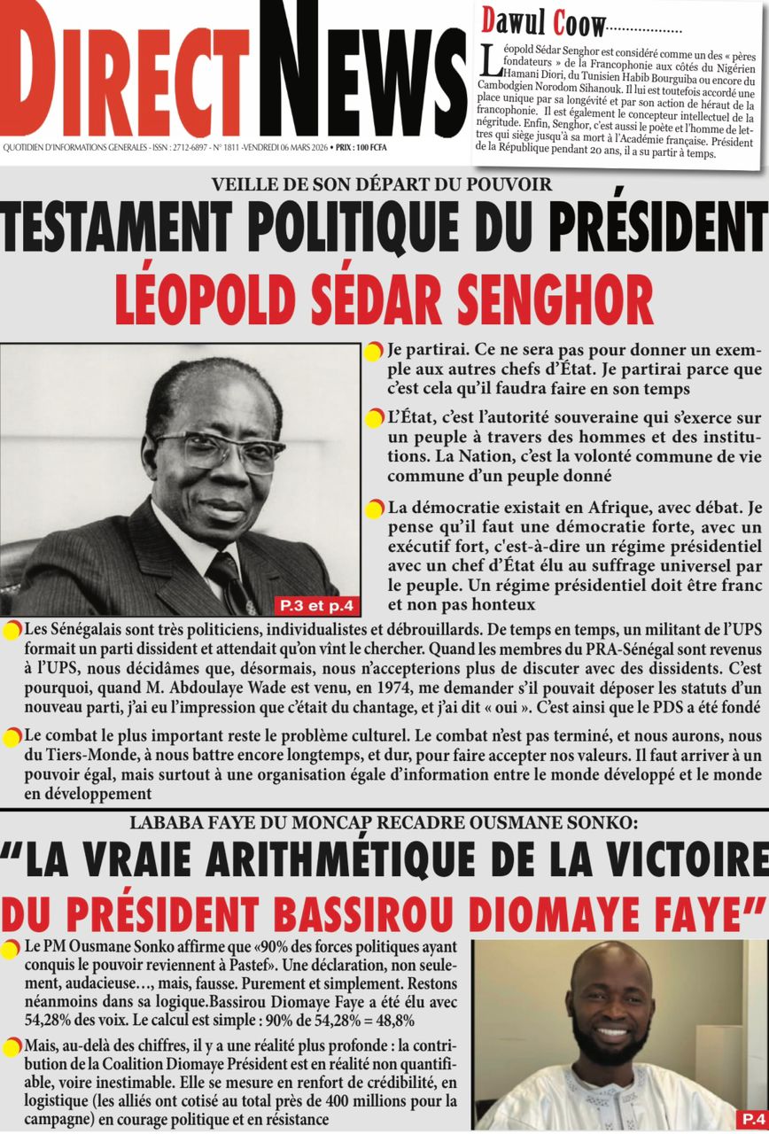 Découvrez les Unes des journaux sénégalais du vendredi 06 mars 2026