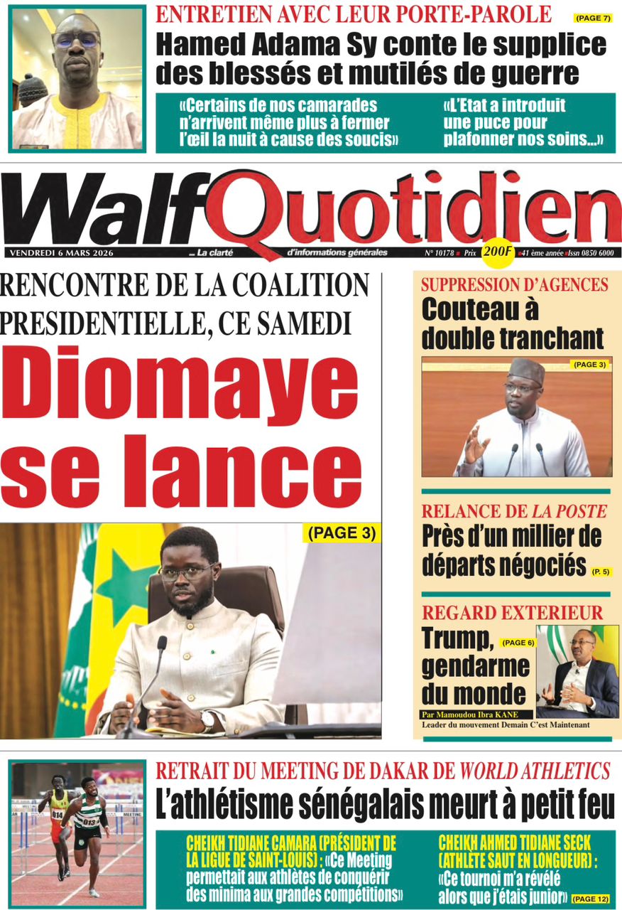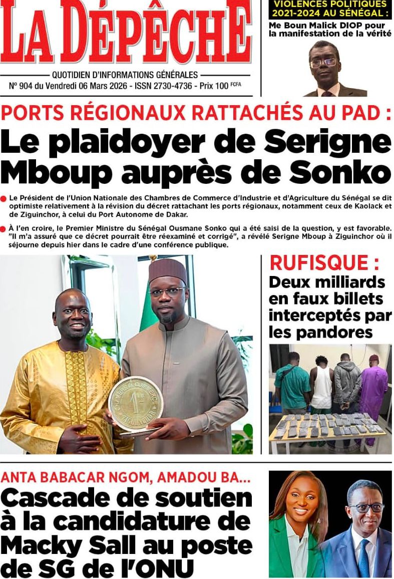 Accueil » Découvrez les Unes des journaux sénégalais du vendredi 06 mars 2026