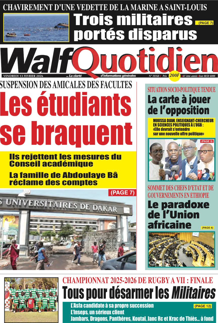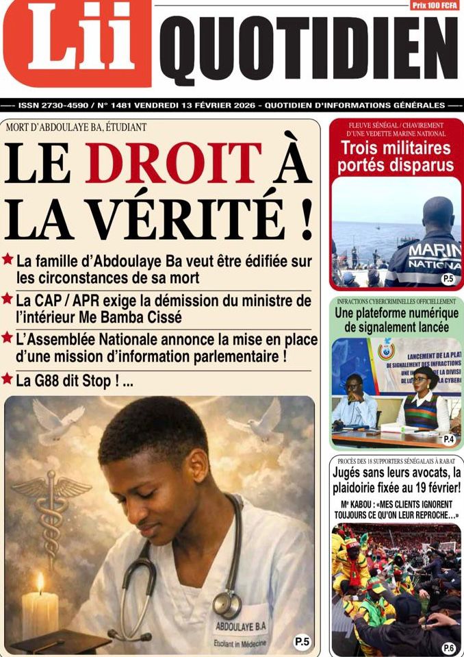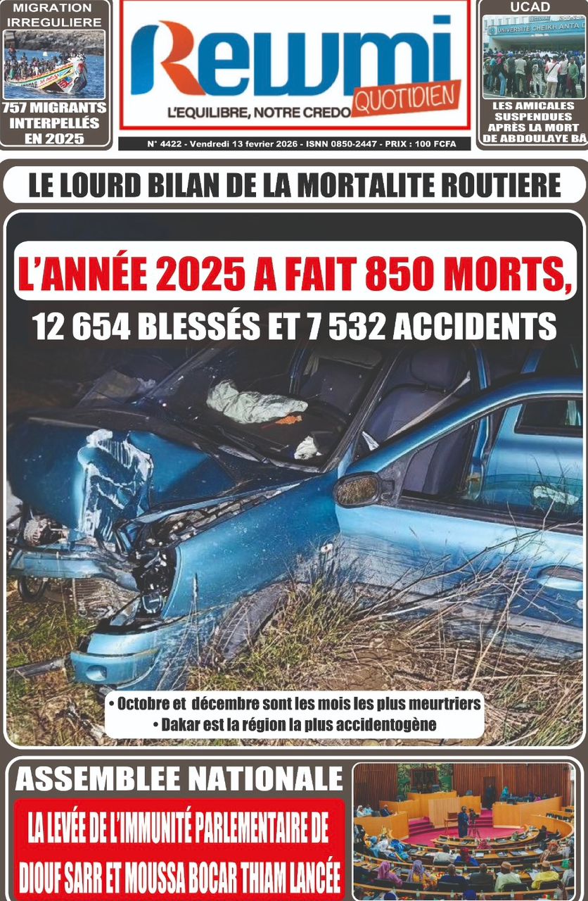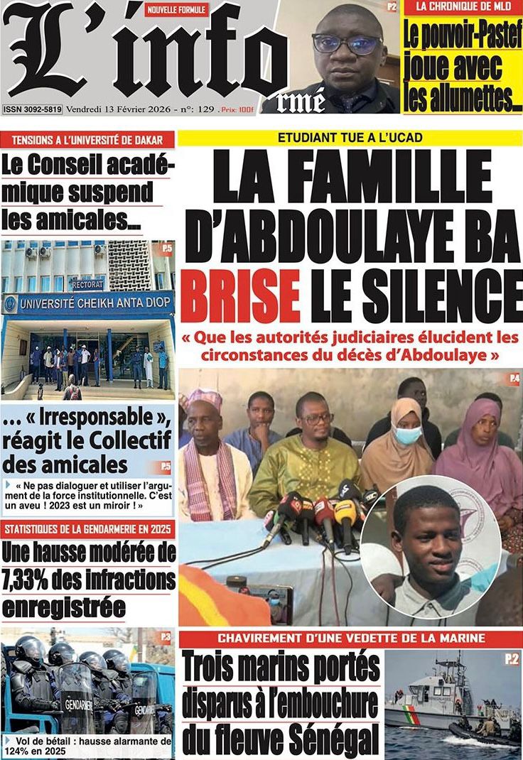 Accueil » Découvrez les Unes des journaux sénégalais du vendredi 13 février 2026