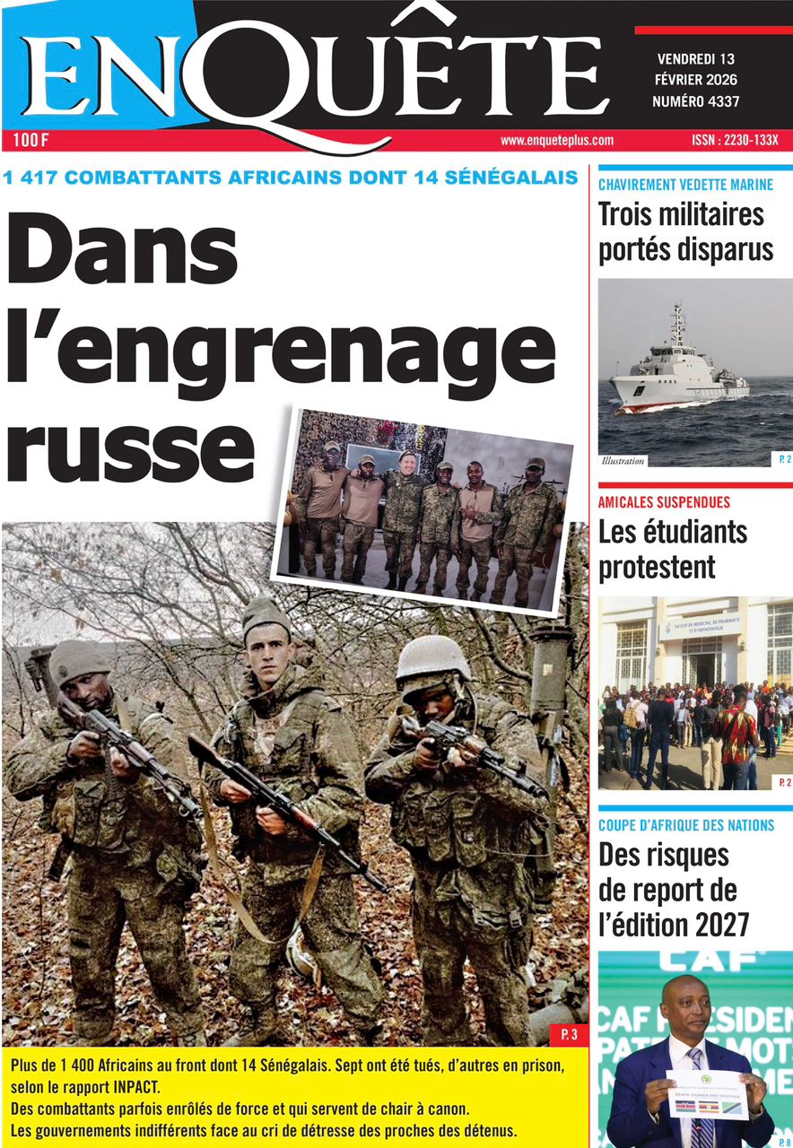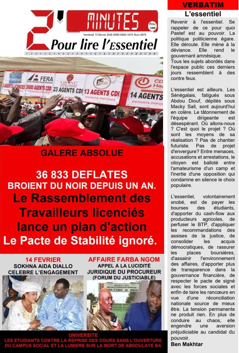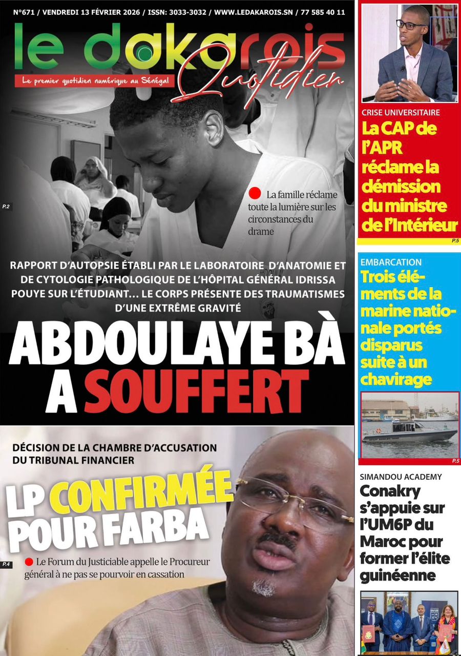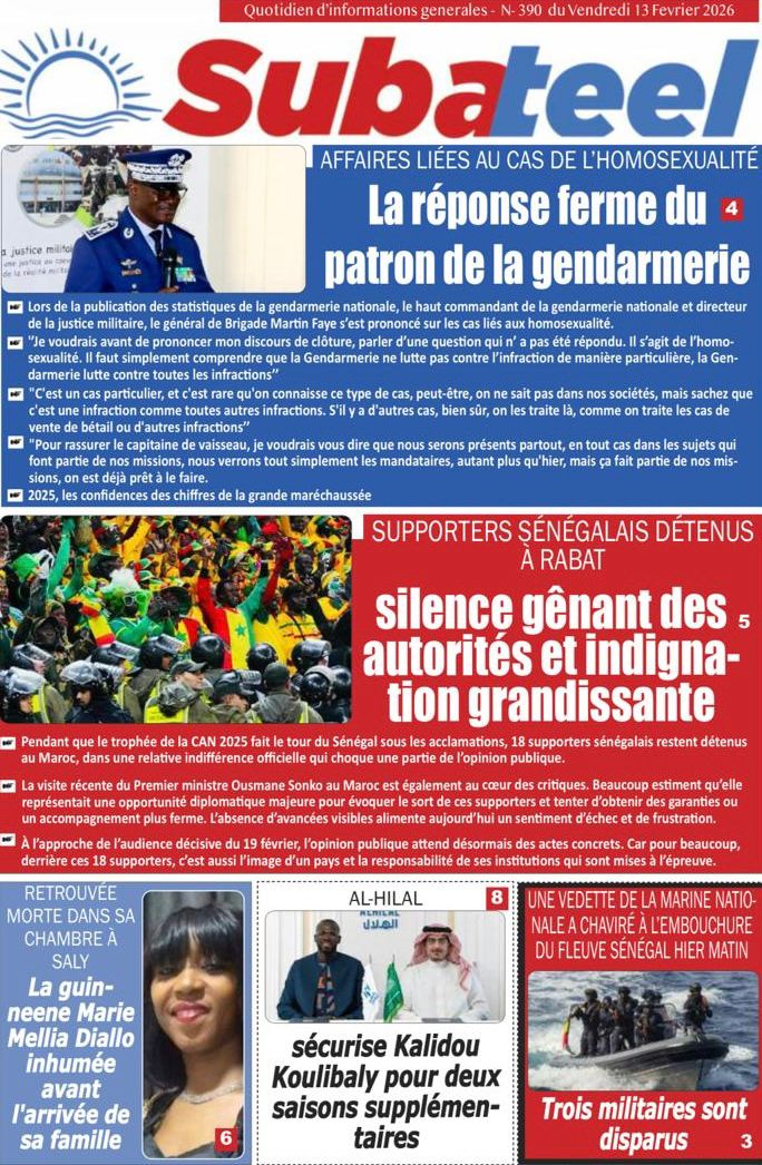 Accueil » Découvrez les Unes des journaux sénégalais du vendredi 13 février 2026
