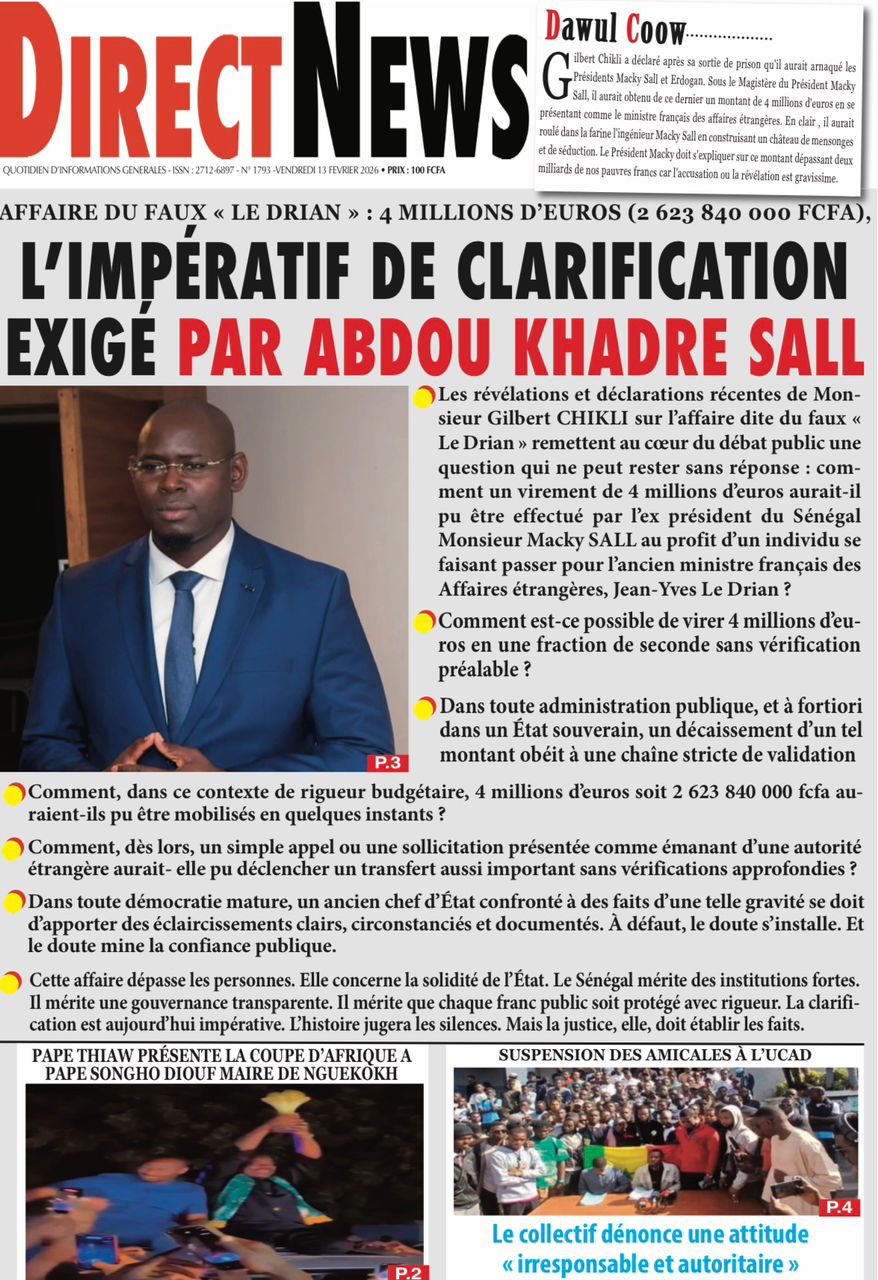 Revue de presse Ahmed Aidara du Vendredi 13 Février 2026