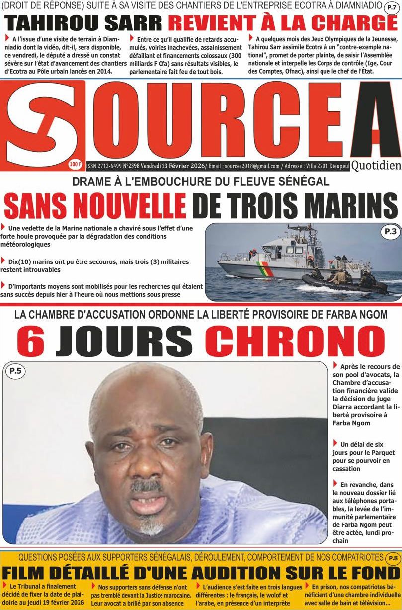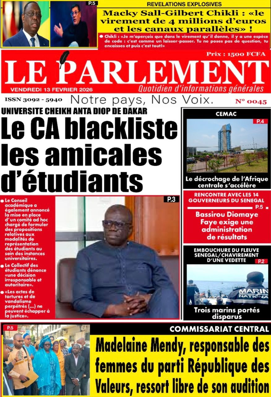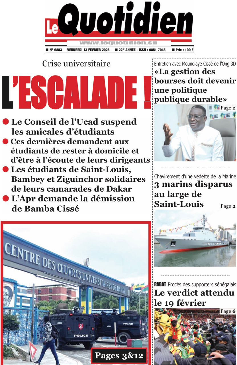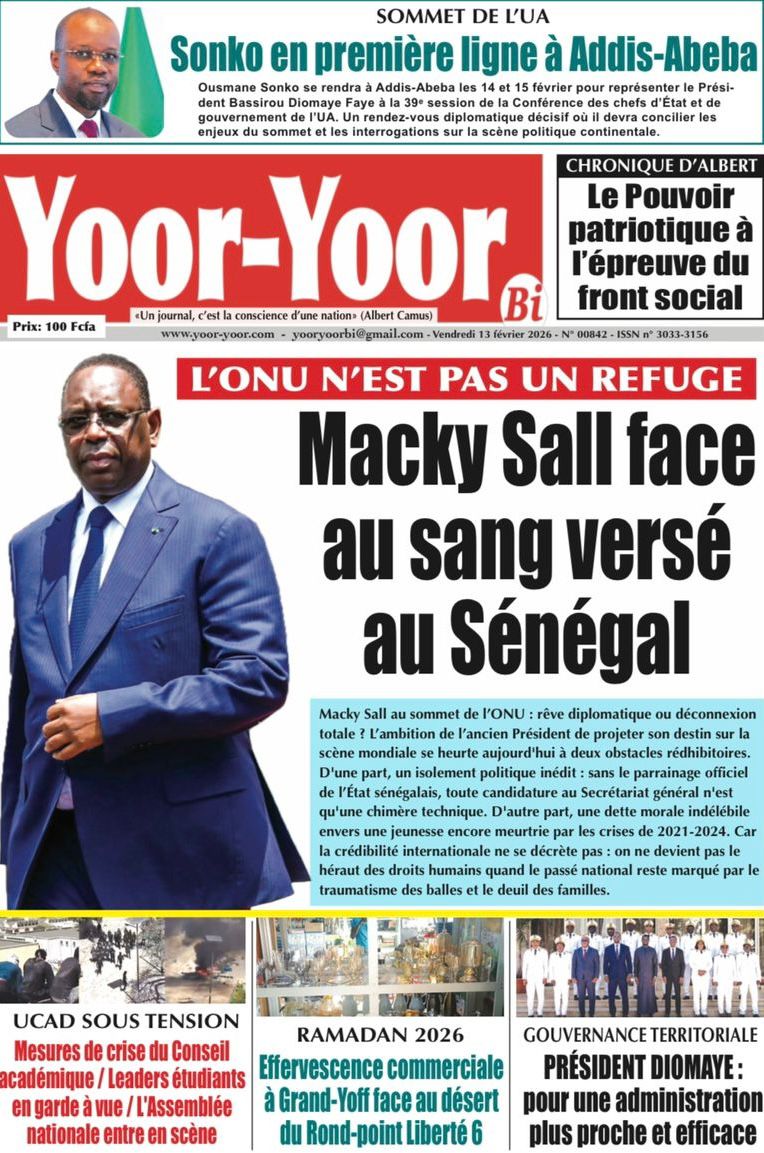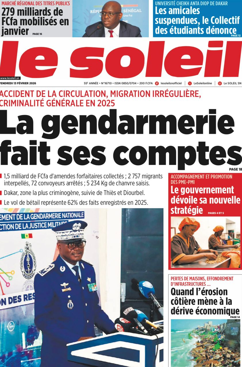 Découvrez les Unes des journaux sénégalais du vendredi 13 février 2026