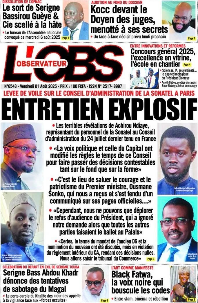 Découvrez les Unes des journaux sénégalais du vendredi 1er août 2025
