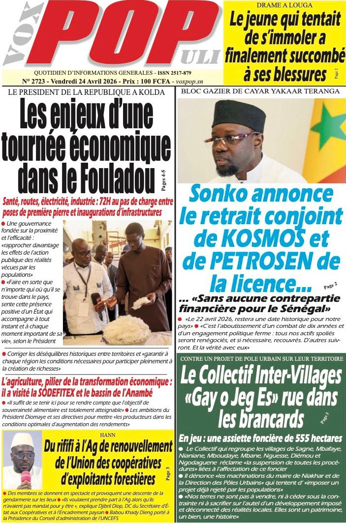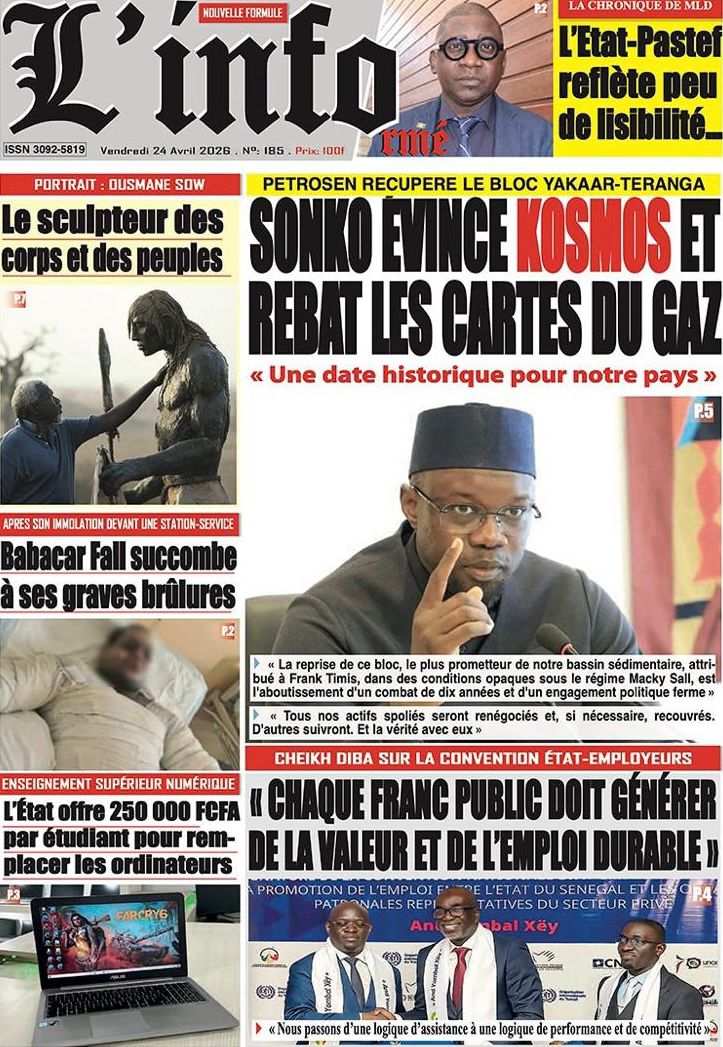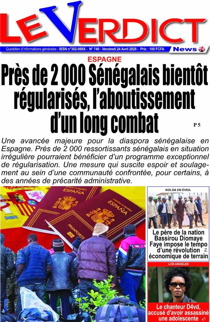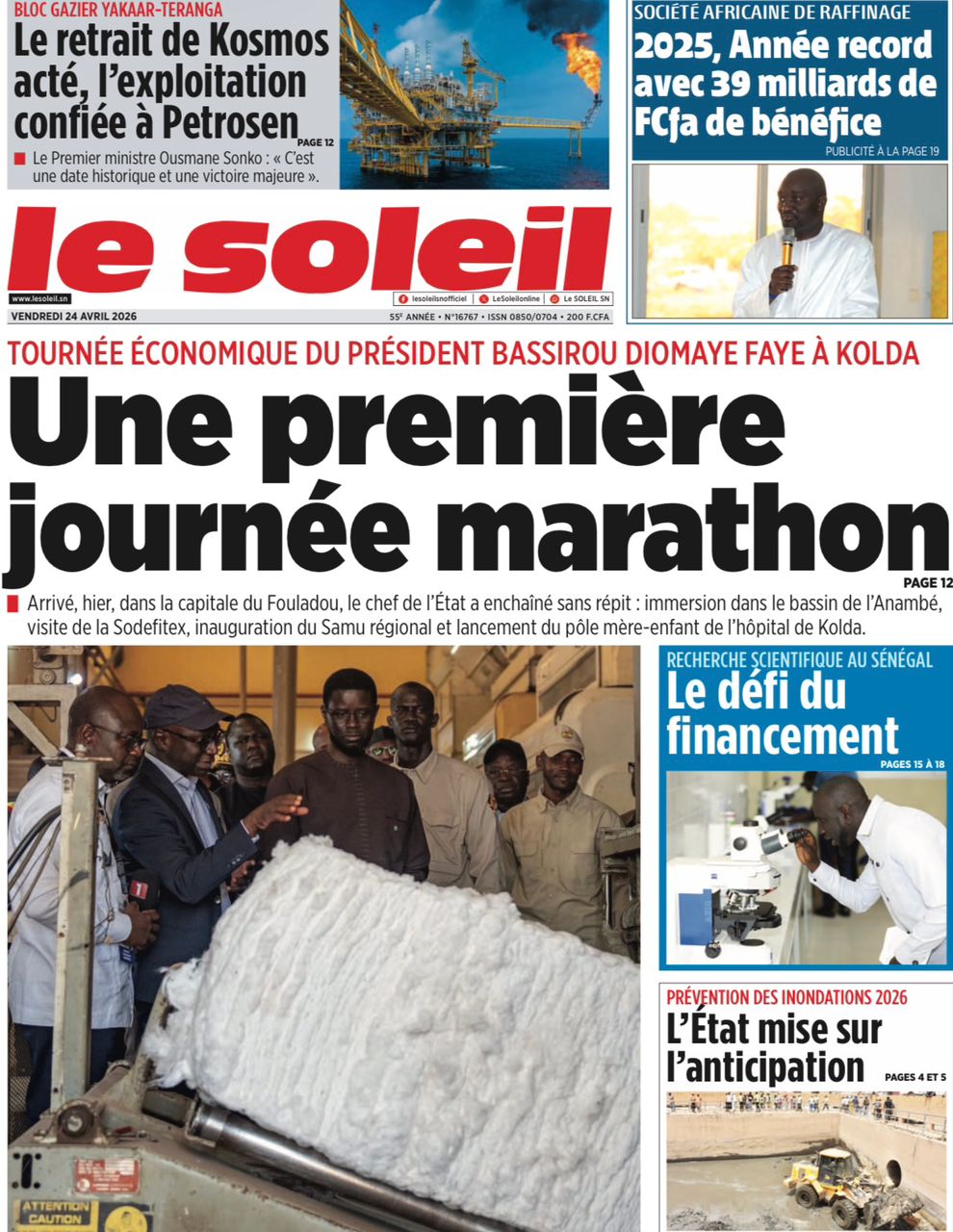 Découvrez les Unes des journaux sénégalais du vendredi 24 avril 2026