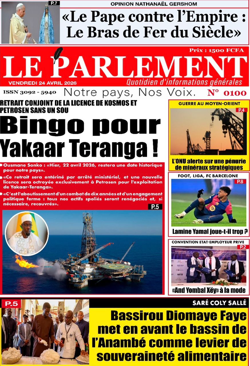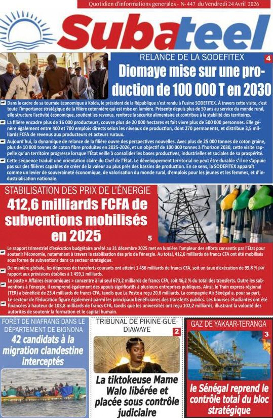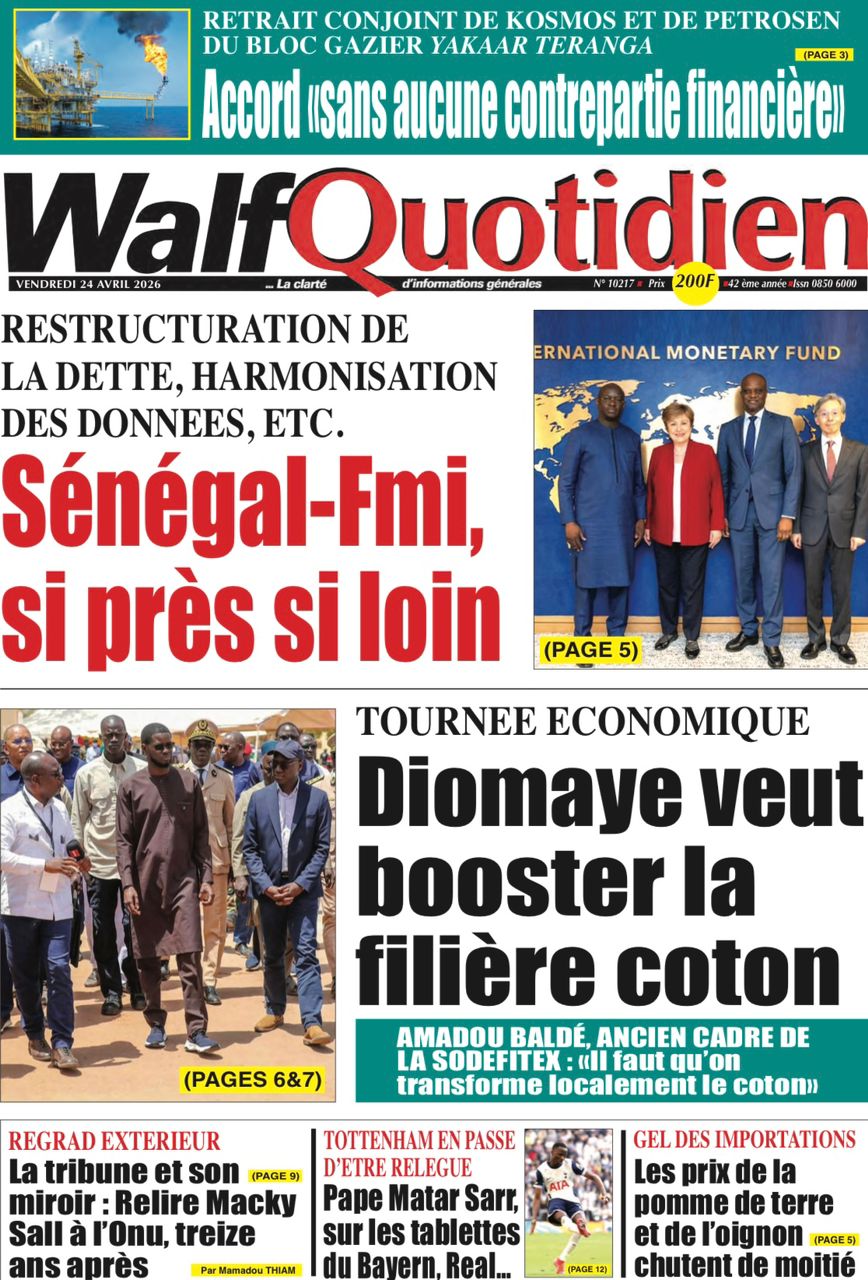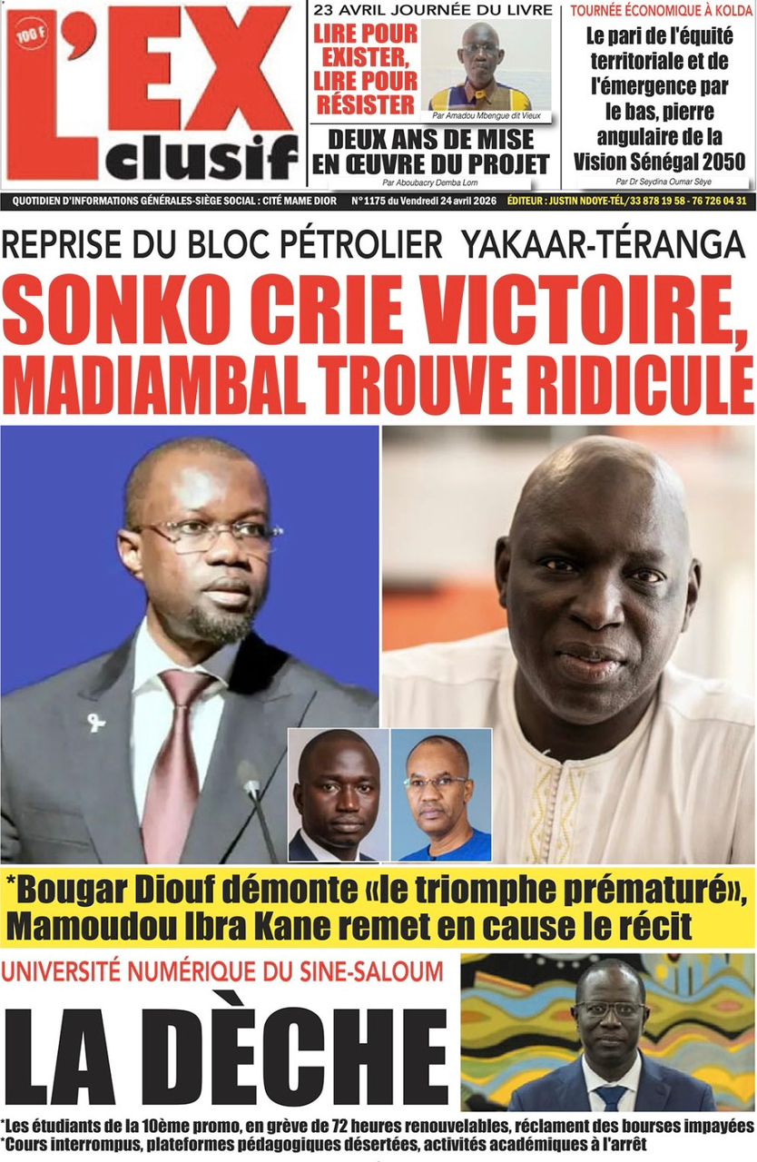 Découvrez les Unes des journaux sénégalais du vendredi 24 avril 2026