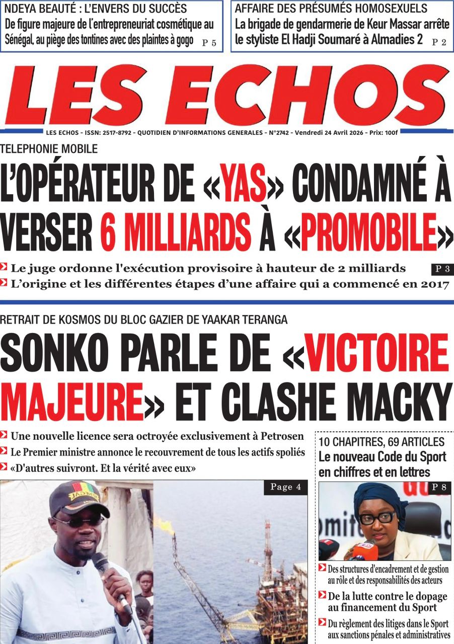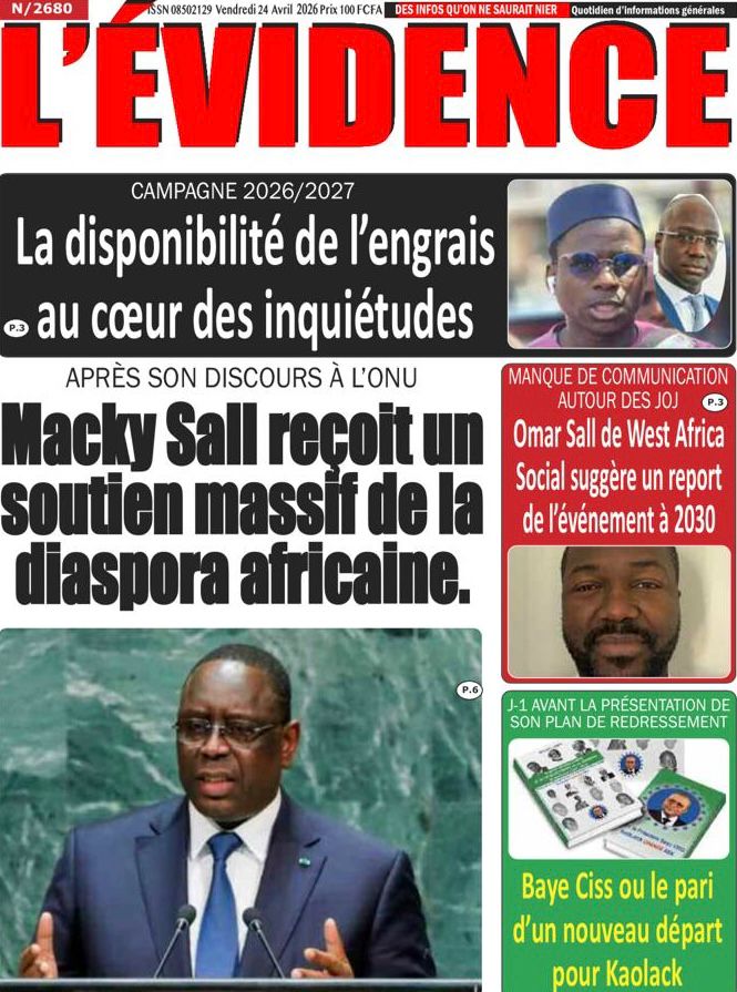 Accueil » Découvrez les Unes des journaux sénégalais du vendredi 24 avril 2026