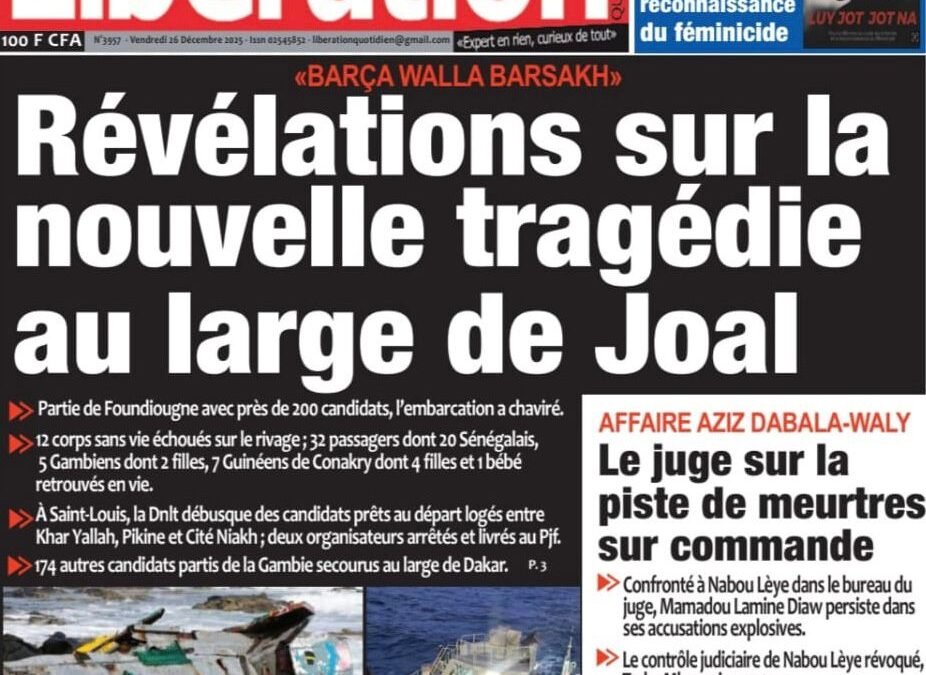 Découvrez les Unes des journaux sénégalais du vendredi 26 décembre 2025