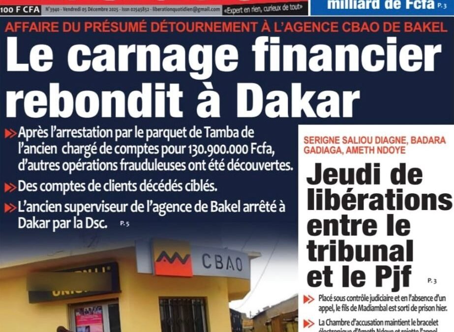 Découvrez les Unes des journaux sénégalais du vendredi 5 décembre 2025