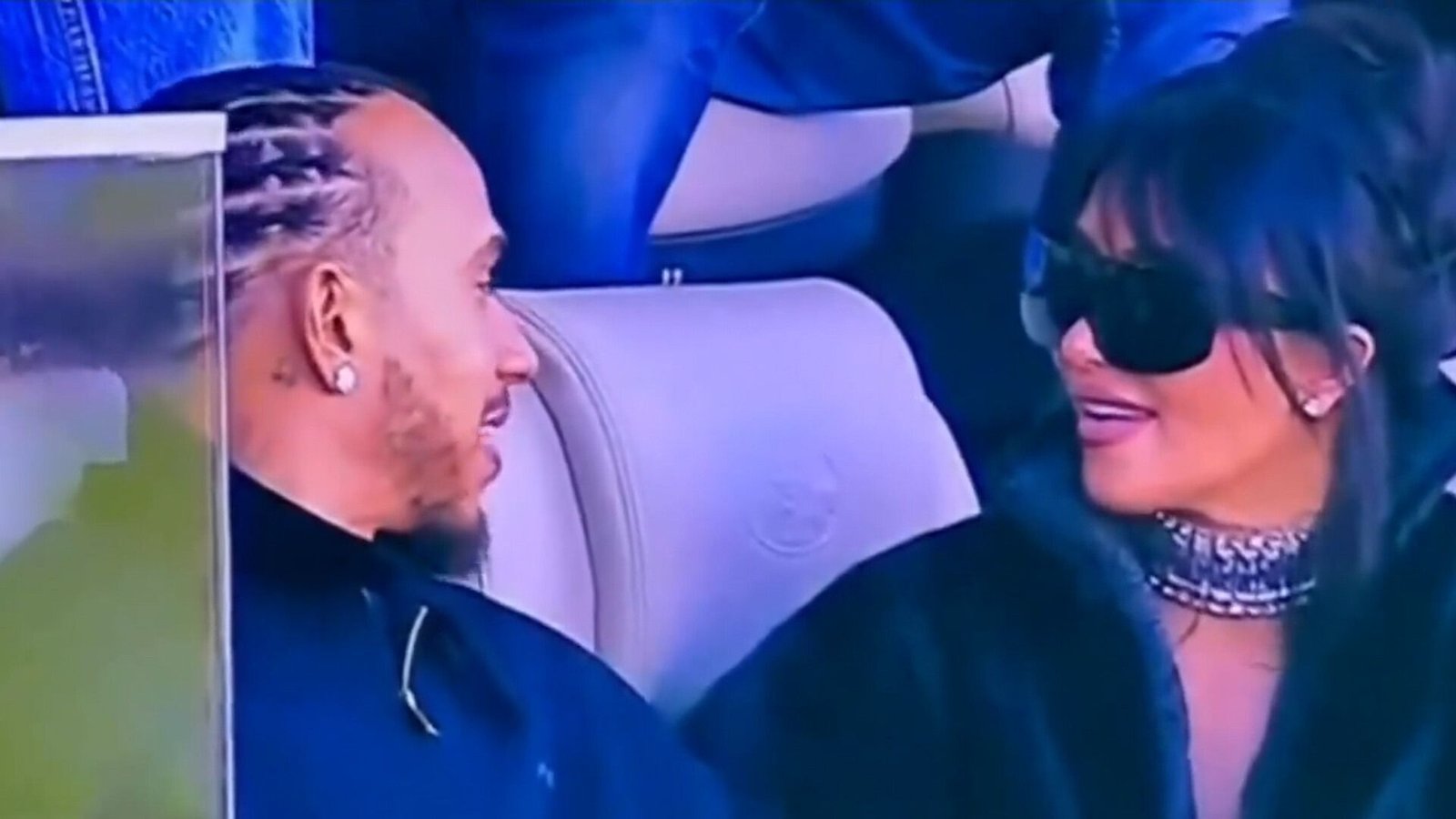 Dans des tenues noires coordonnées, la star de téléréalité et le pilote de Formule 1 ont partagé la loge de Kendall Jenner, sous des milliers de regards indiscrets. Lewis Hamilton, plutôt discret, dans un pull Ralph Lauren à fermeture éclair et ses cheveux tressés relevés dans un chignon, Kim Kardashian, à son image, dans un manteau noir sculptural, collier en diamants au cou et lunettes de soleil XXL vissées sur le nez. Si l’ex de Kanye West voulait passer incognito, c’est visiblement raté.