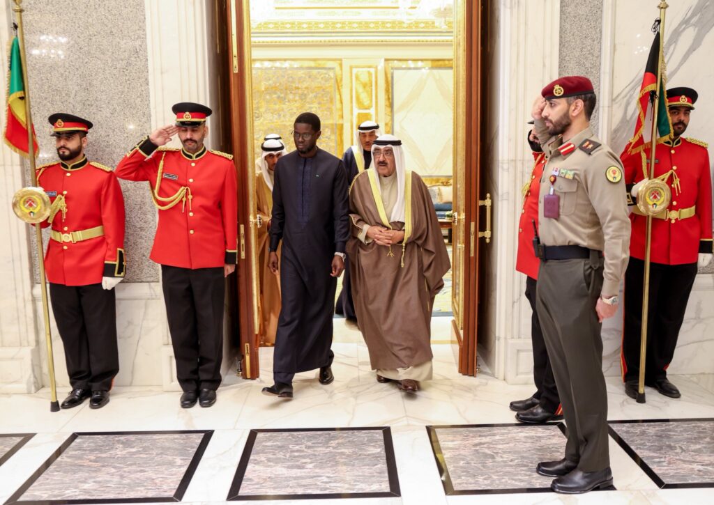 Le Président de la République, Bassirou Diomaye Faye, accompagné de sa délégation, a été accueilli avec les honneurs, ce mardi 13 janvier 2026, au Palais Bayan, à l’occasion de la cérémonie officielle de réception, par Son Altesse l’Émir de l’État du Koweït, Cheikh Meshal Al-Ahmad Al-Jaber Al-Sabah.