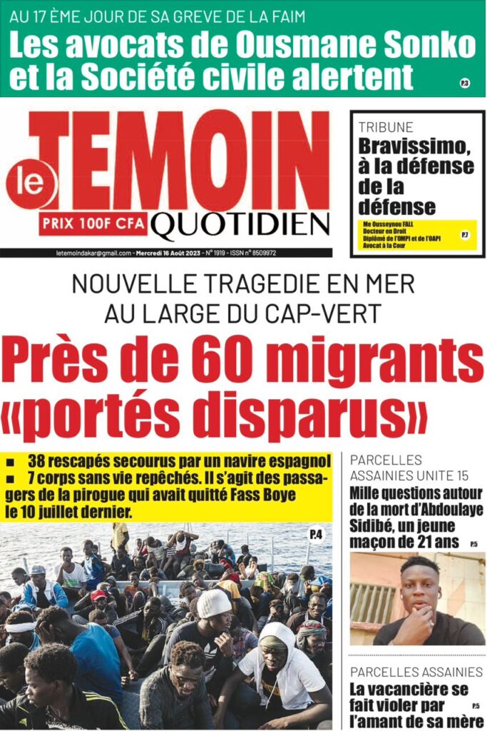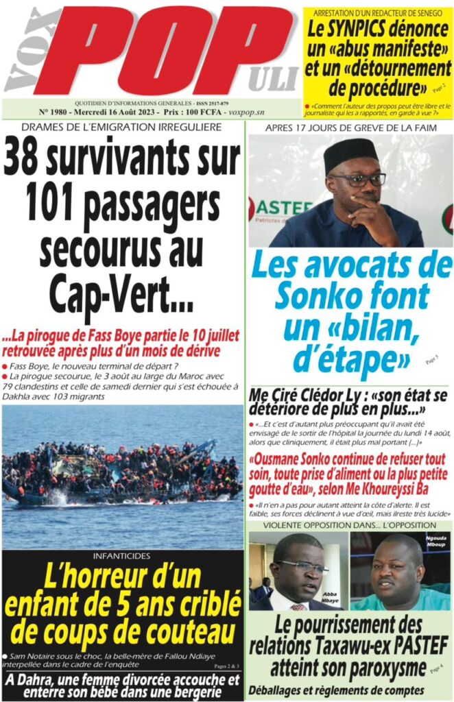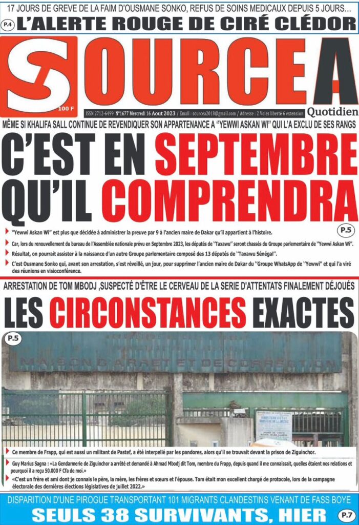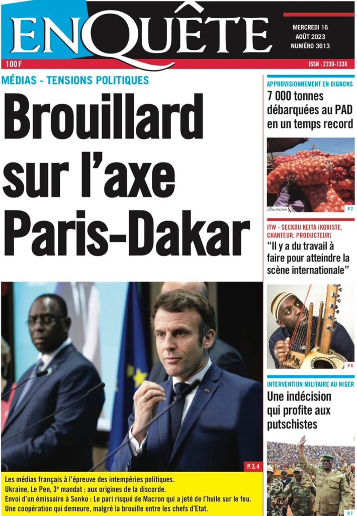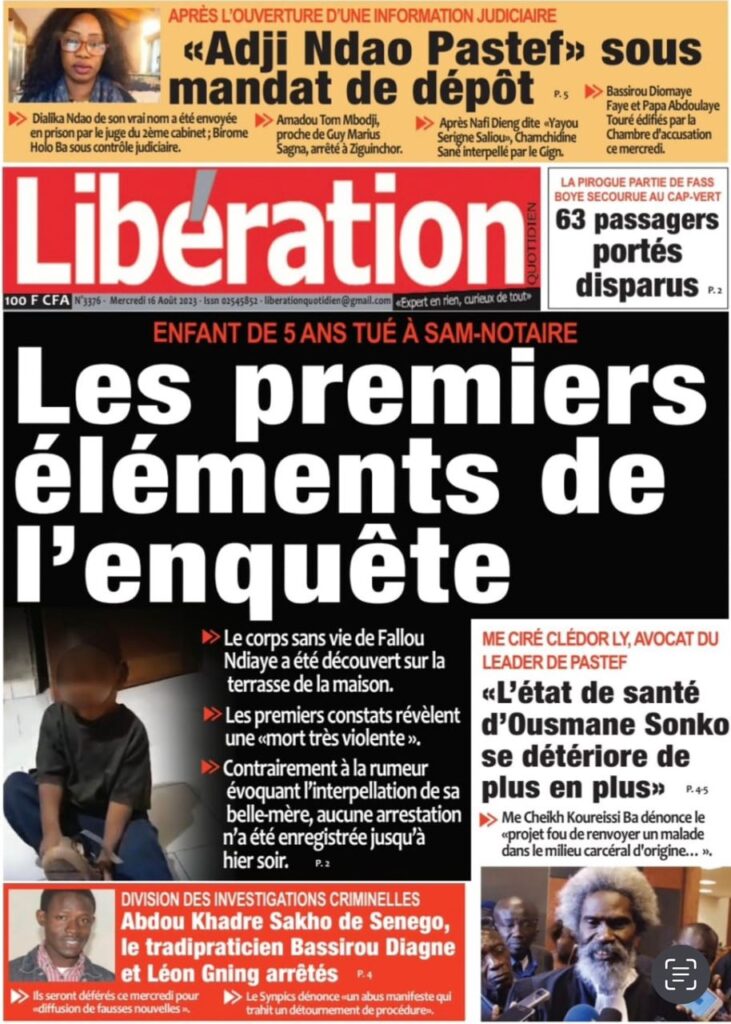Une des journaux du mercredi 16 août 2023
