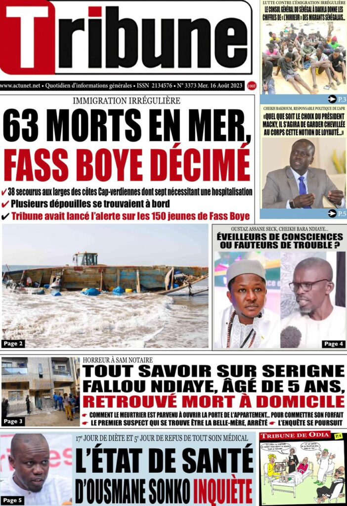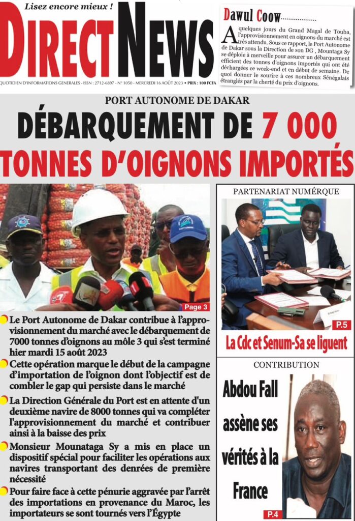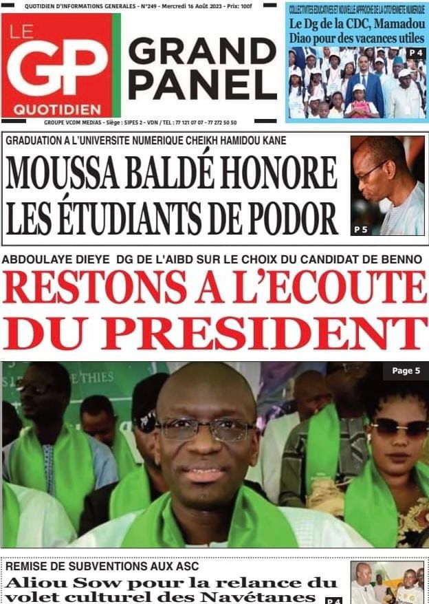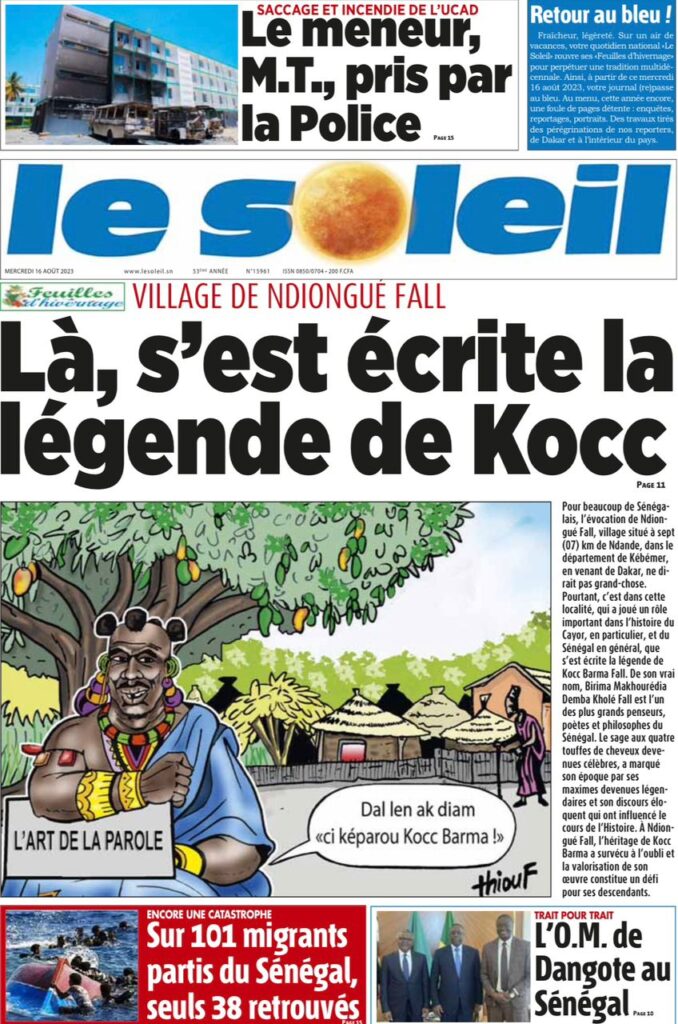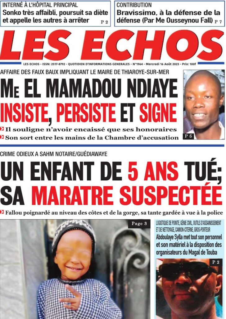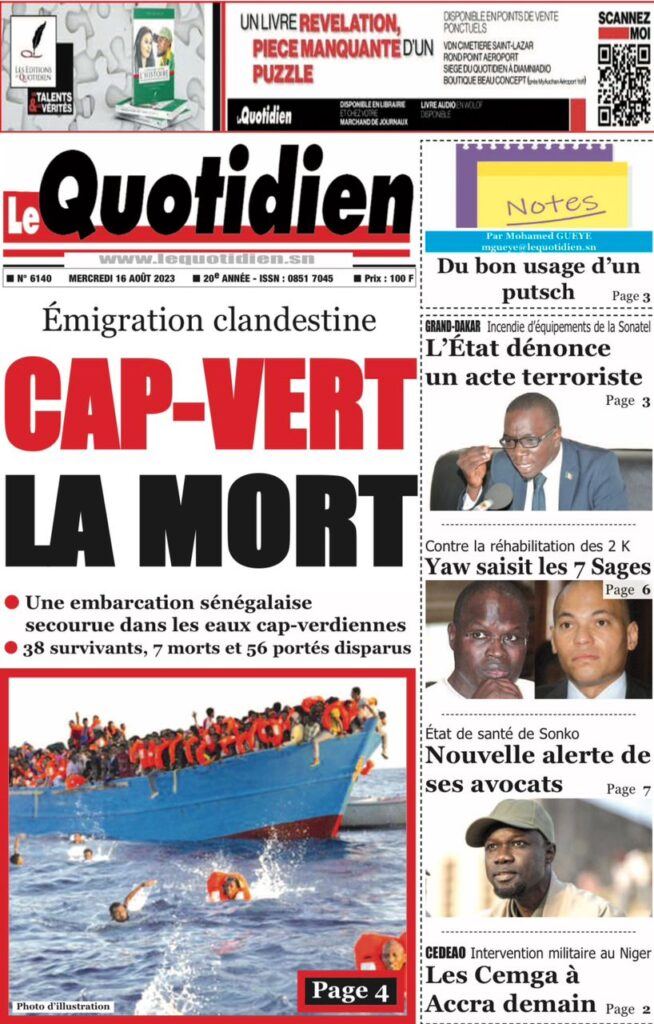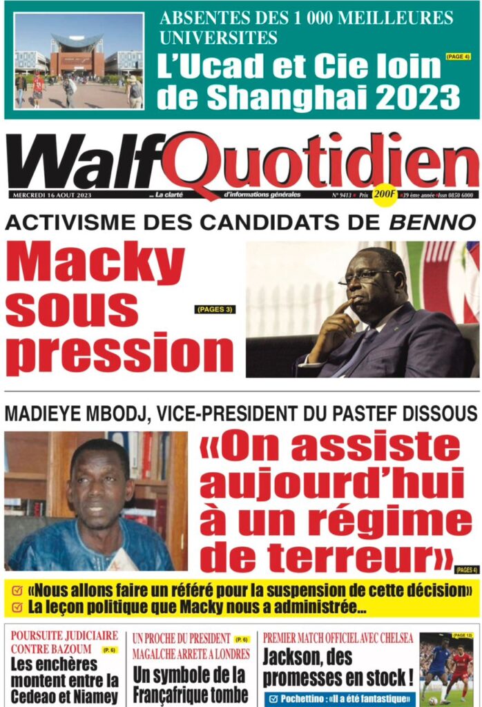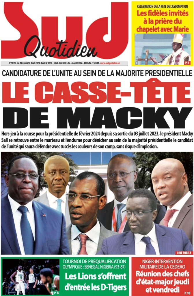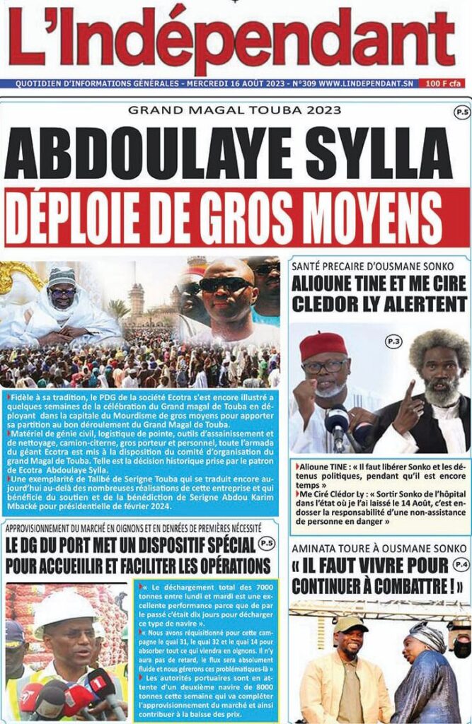 Accueil » Une des journaux du mercredi 16 août 2023Une des journaux du mercredi 16 août 2023