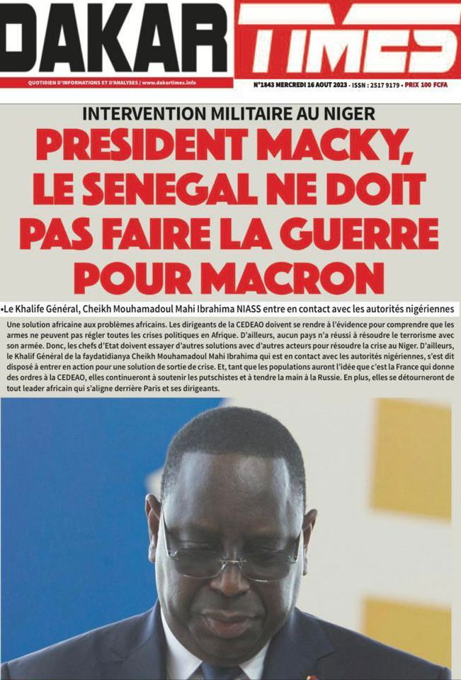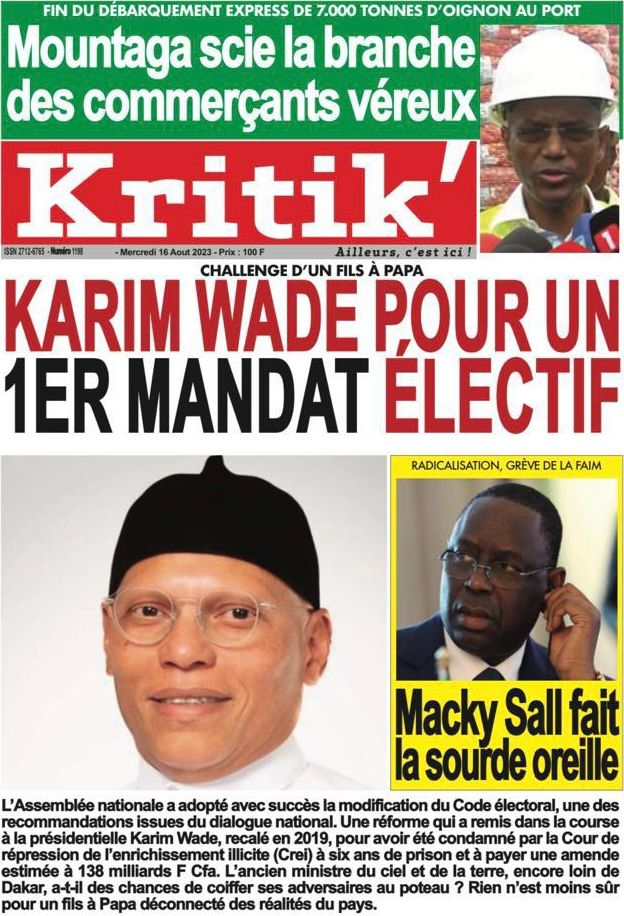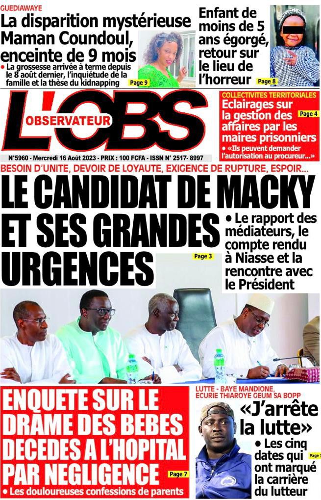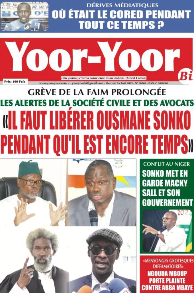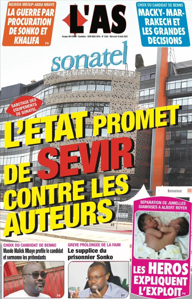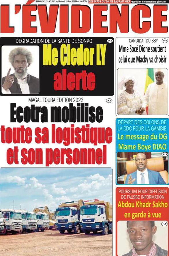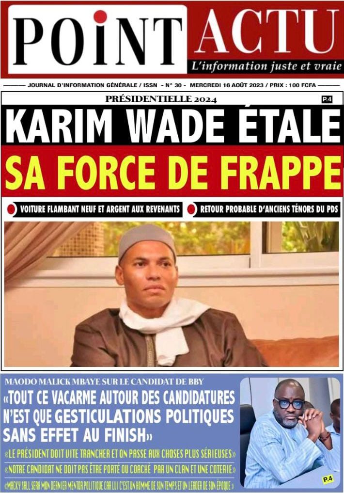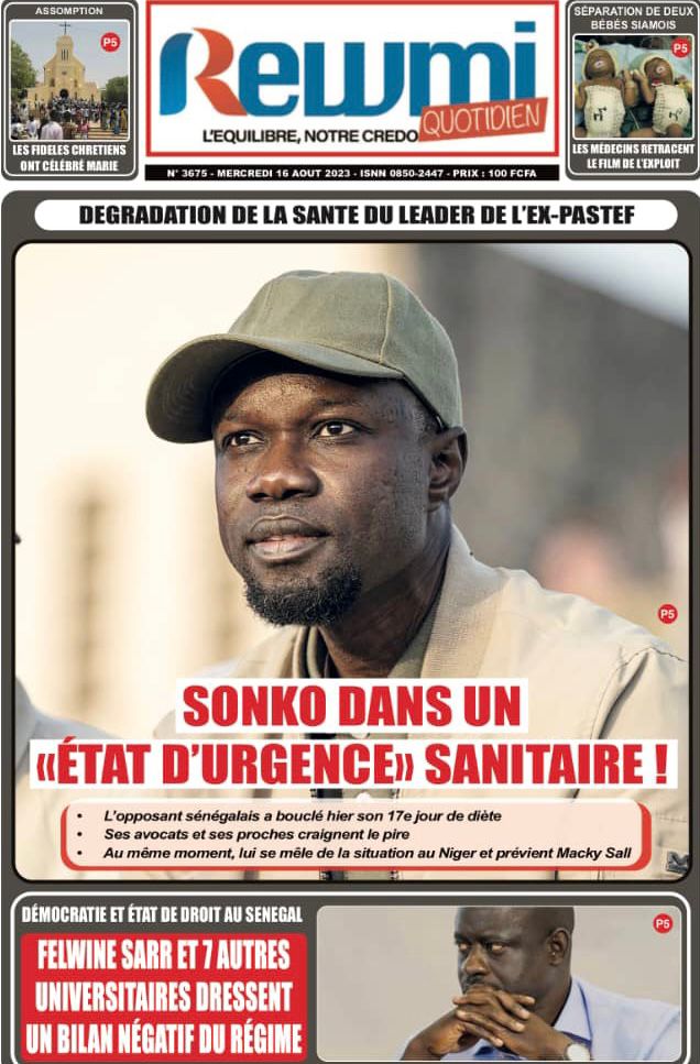 Une des journaux du mercredi 16 août 2023Une des journaux du mercredi 16 août 2023