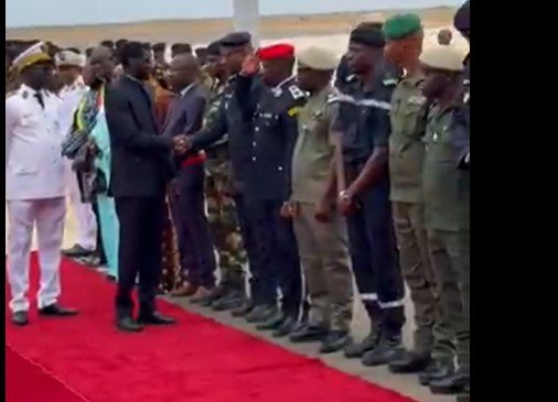 Le @PR_Diomaye est arrivé à Saint-Louis pour une visite dans le pôle territoire Nord. Accueilli à l’aéroport par le Gouverneur et les autorités locales, il a reçu les honneurs militaires. Une visite placée sous le signe du développement territorial et de la Vision Sénégal 2050. pic.twitter.com/CIqhCdumcL